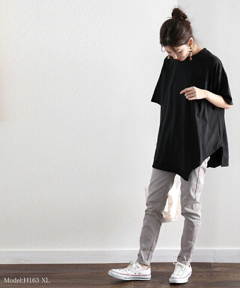 楽天eign シングル夏レディース半袖新作変則ルーズパッチポケットロングTシャツトップス サマー 夏物 cat833789429274