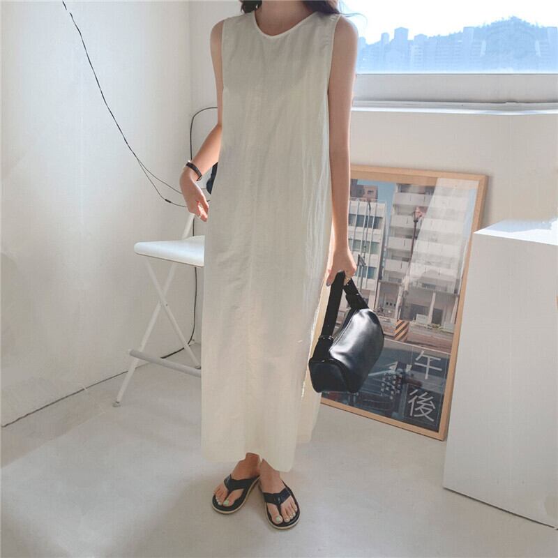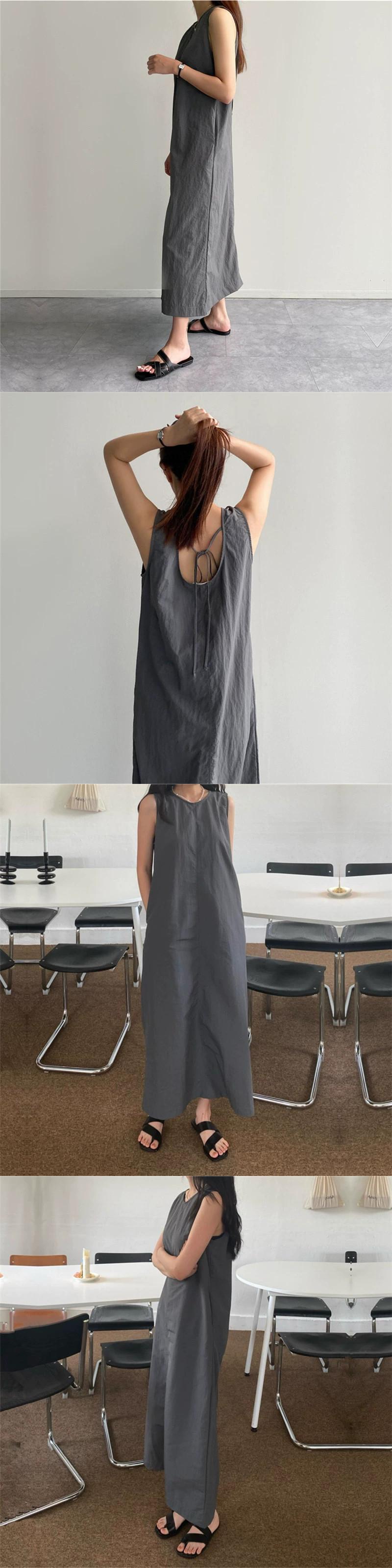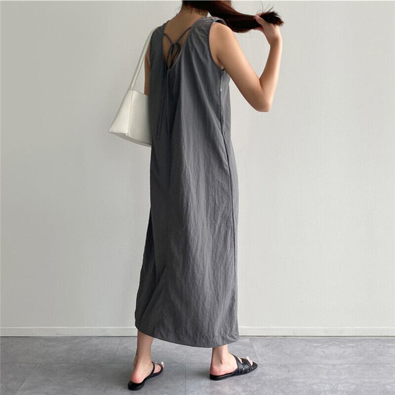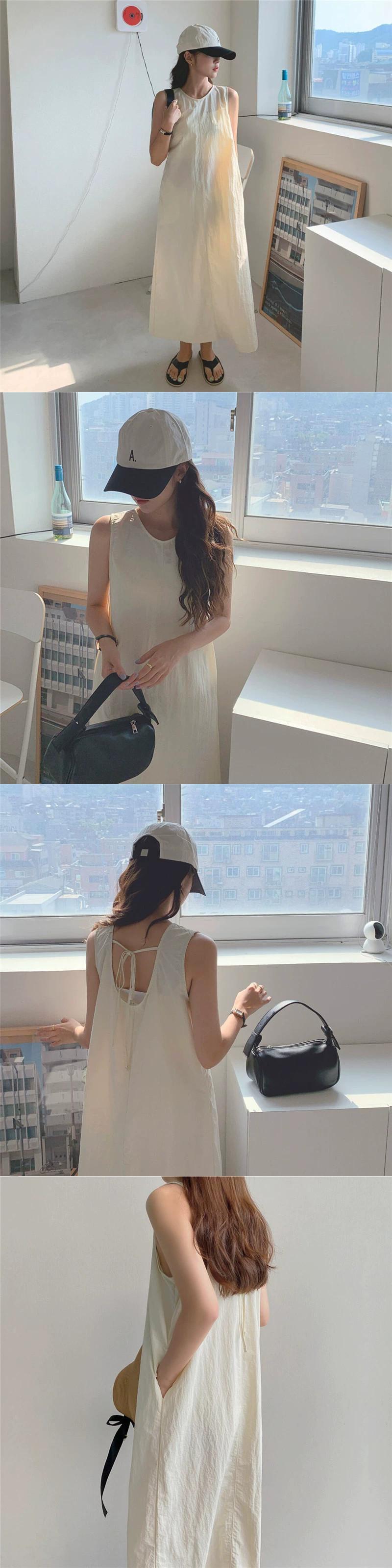 バージョンのラウンドネックノースリーブ薄いAラインロングスカートベストスカート2023夏新小さな新鮮な蝶ネクタイバックレスドレス リボン Oネック cat886285556649