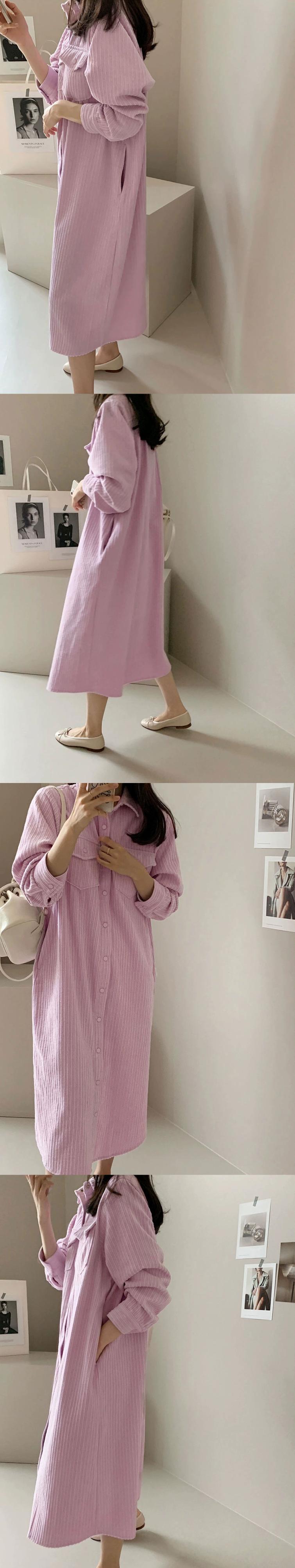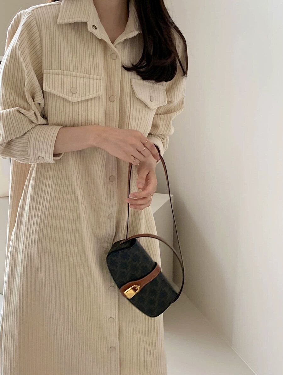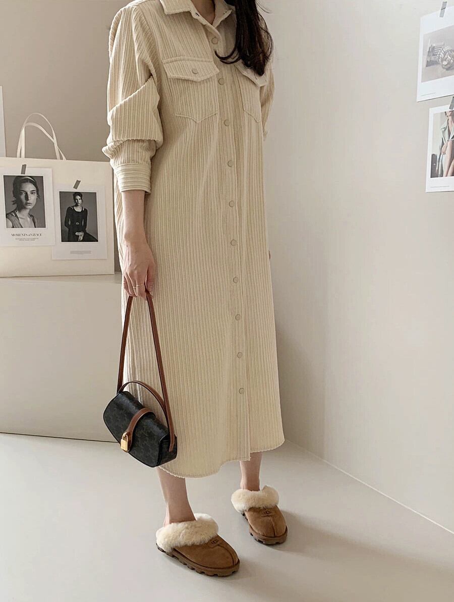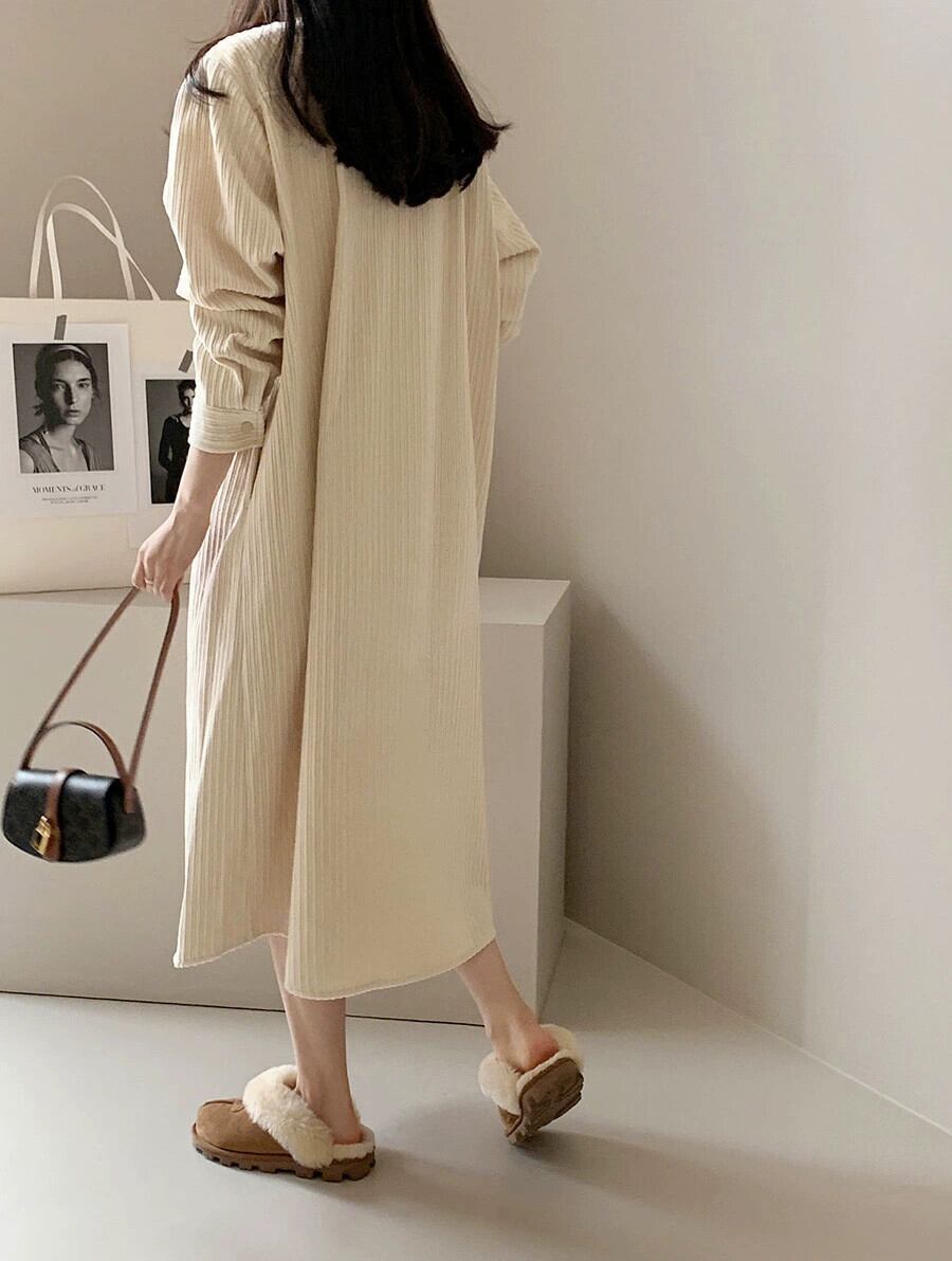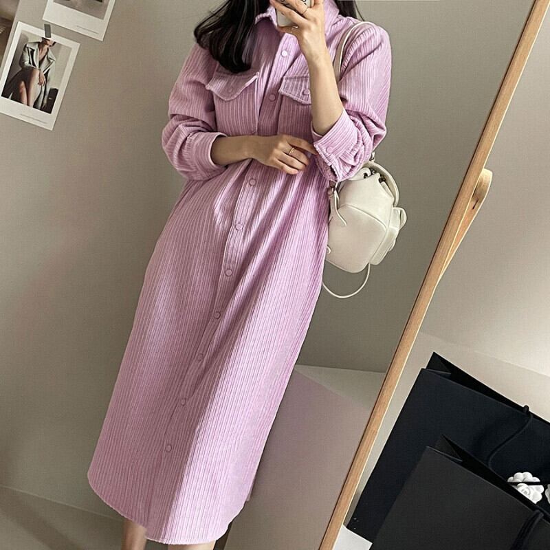 東大門秋の新怠惰なルーズコーデュロイ無地気質カジュアルロングシャツドレス女性 オータム 秋物 ソリッドカラー cat889943128913