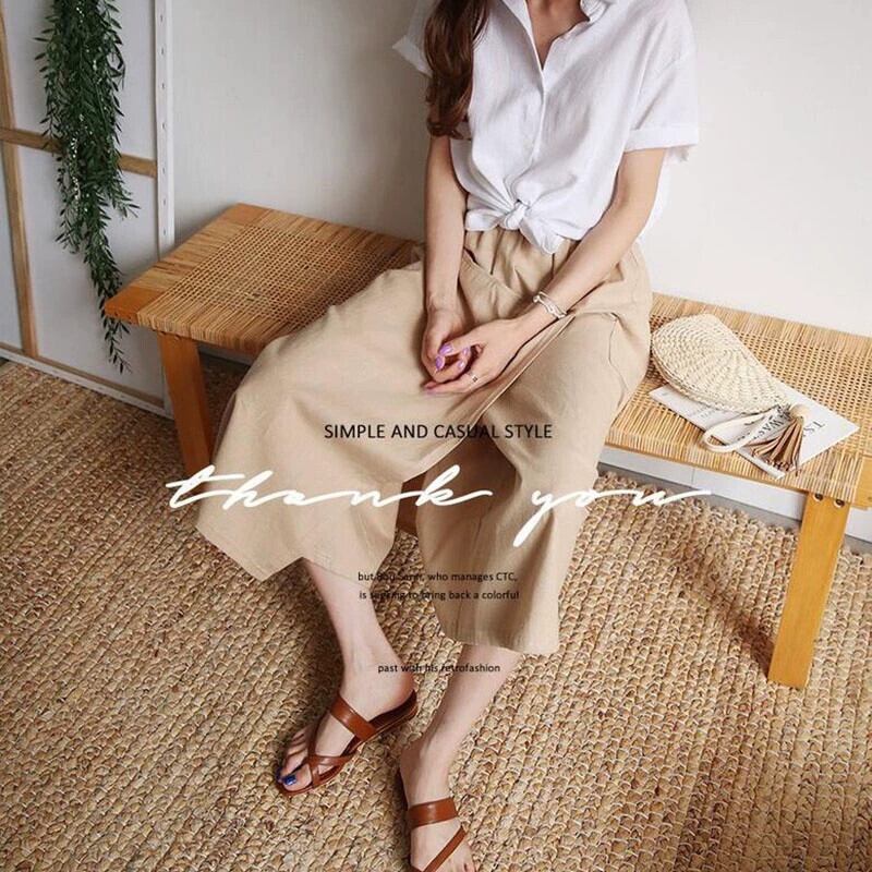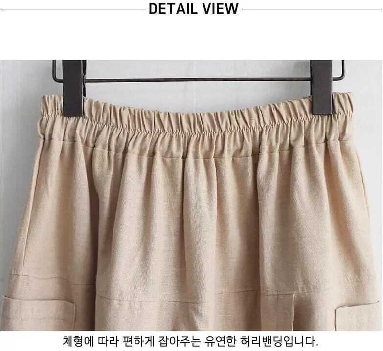 越境貿易 夏夏ウエストゴム綿麻スリットスカート ワイド袴 シンプルポケットリネンスカート コットン エラスティック 伸縮 サマー 夏物 cat810593212701