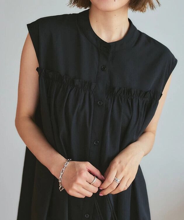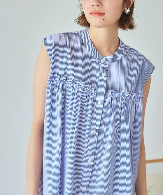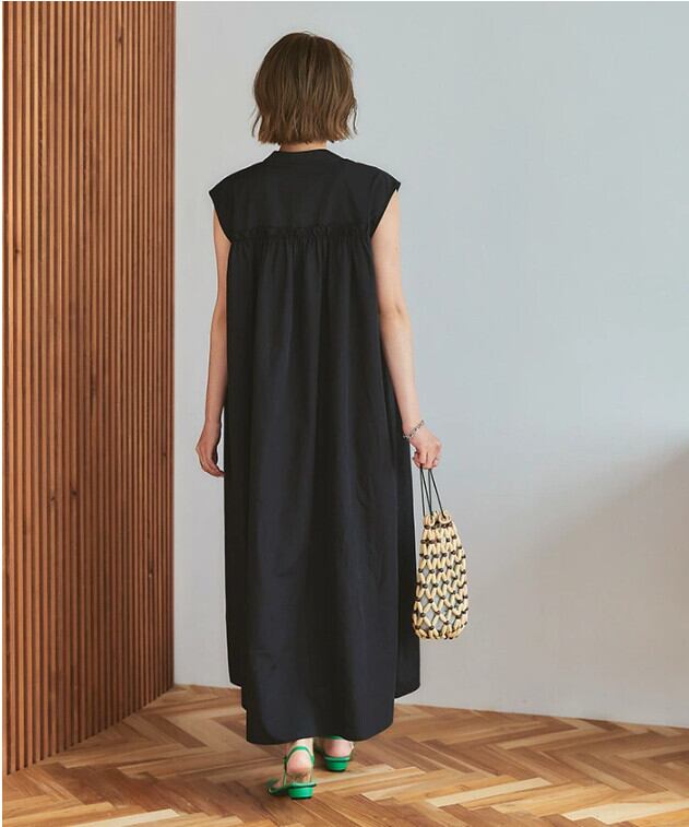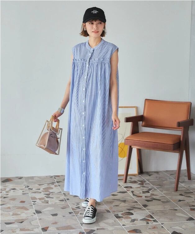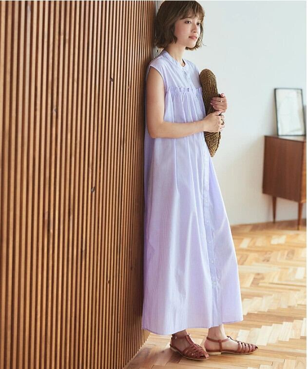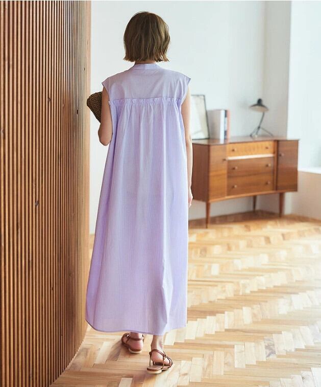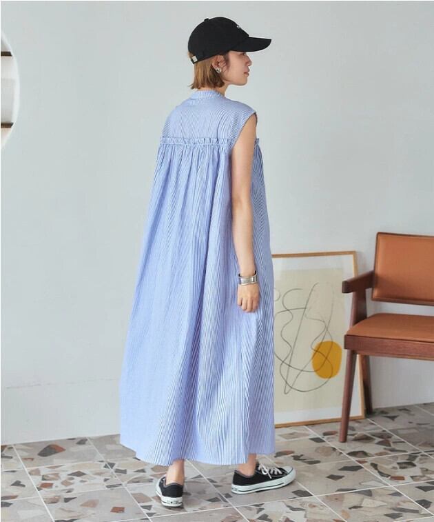 越境ロッテ夏新作エセストライプシングルブレストレースルーズAラインノースリーブドレスロングスカート サマー 夏物 cat839222758877