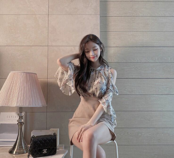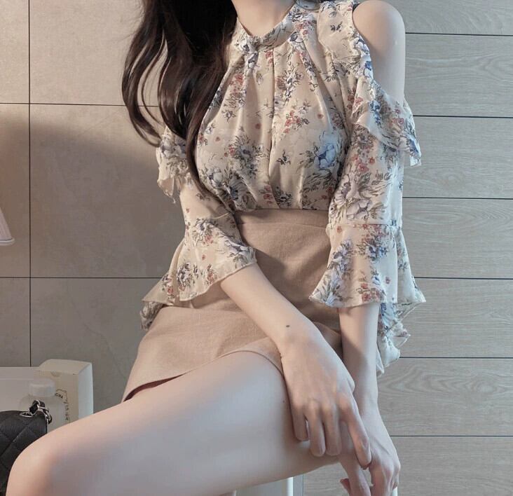 -スタイル花柄シフォンシャツフレンチサマーストラップレスワンショルダートップeignスタイル甘いスーパーフェアリーシャツ女性のデザインセンス 大人ガーリー スウィート キュート カジュアル 夏物 cat864648541474