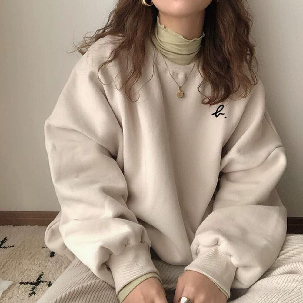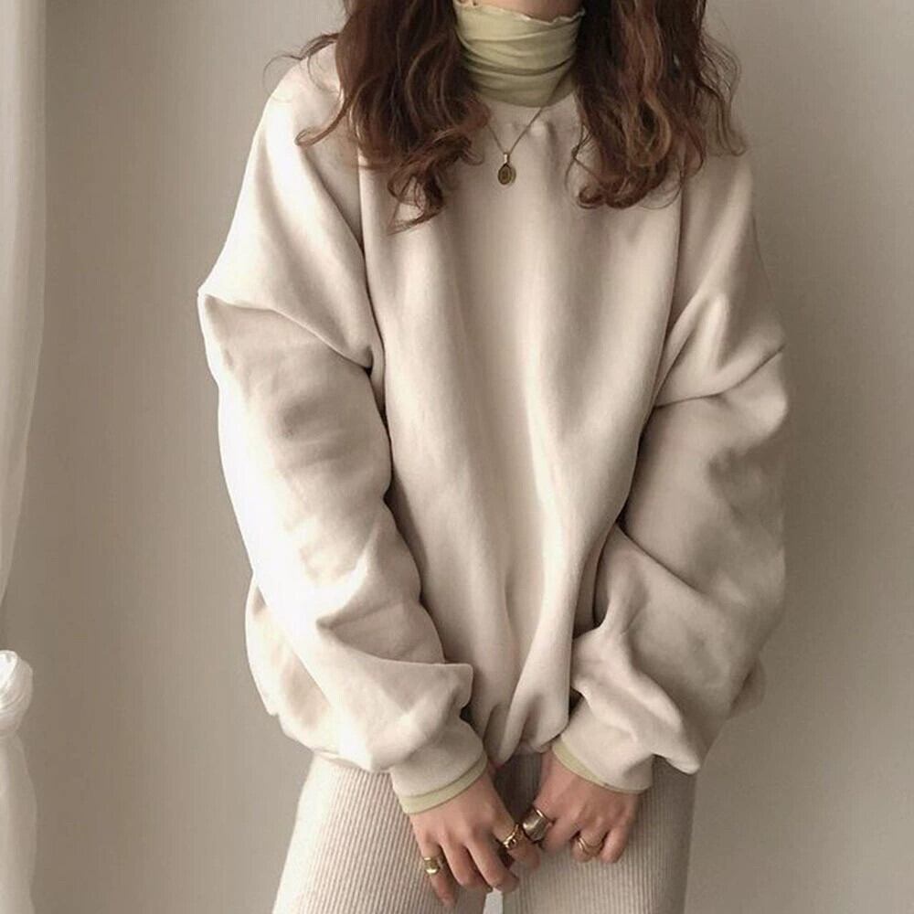 クロスボーダーこれらと新しい秋プルオーバーコットンテリープリントセーターラウンドネックルーズソリッドカラー気質通勤トップ オータム 秋物 Oネック cat825146138069