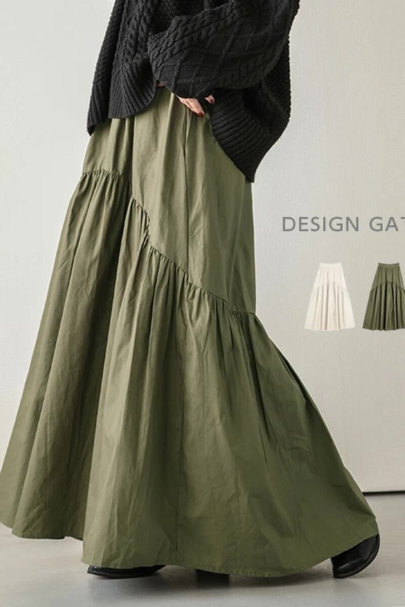 ロッテ ese デザインセンスカジュアルレトロウェーブプリーツハイウエストスカート無地マーメイドスカート大振りロングスカート女性 ハイウェスト ソリッドカラー cat856009309986