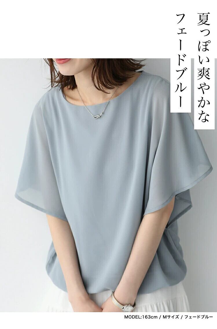 越境 ese とロッテ 2023 夏の新ノースリーブバットシャツルーズラウンドネックカジュアルオールマッチシフォンシャツ女性 サマー 夏物 Oネック cat842900475989