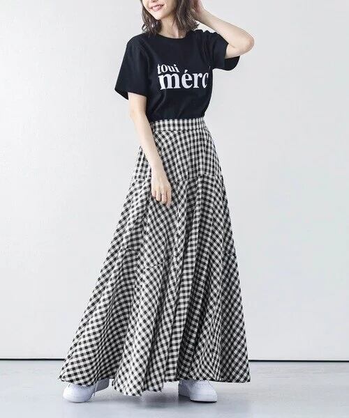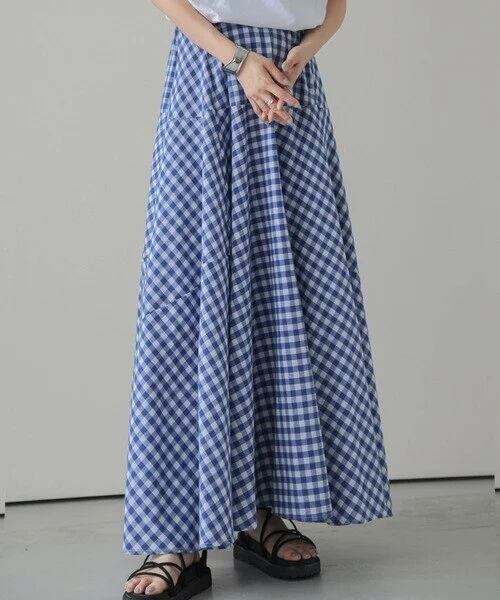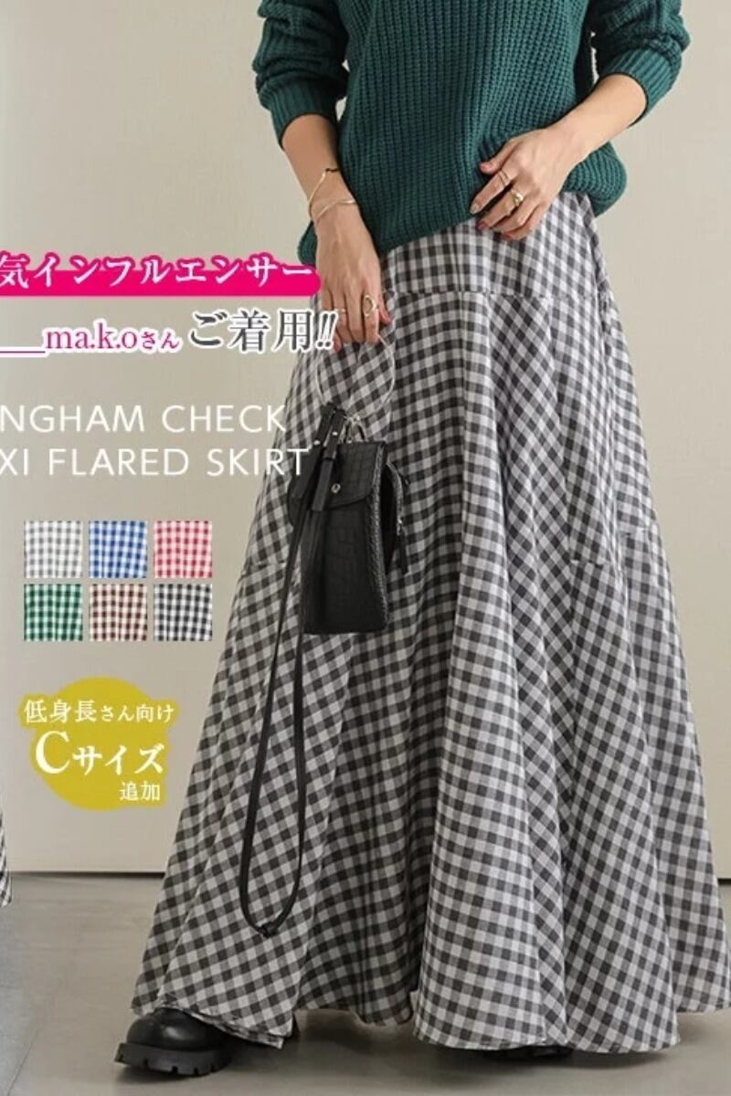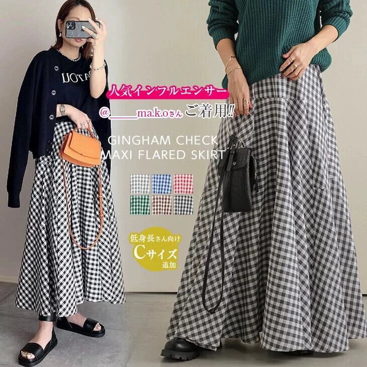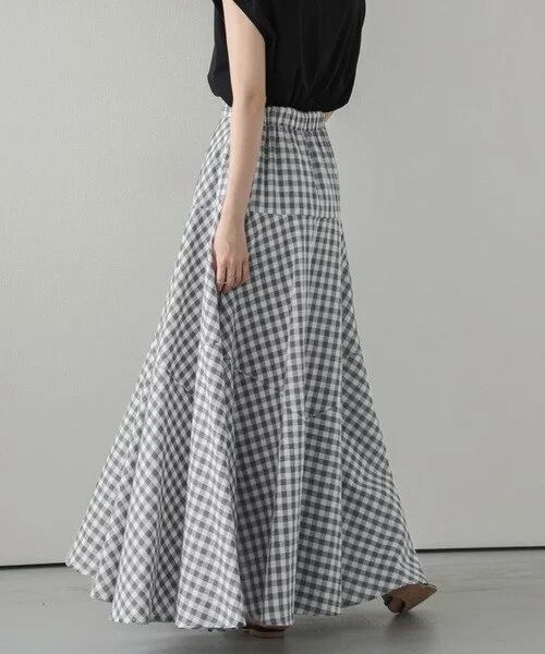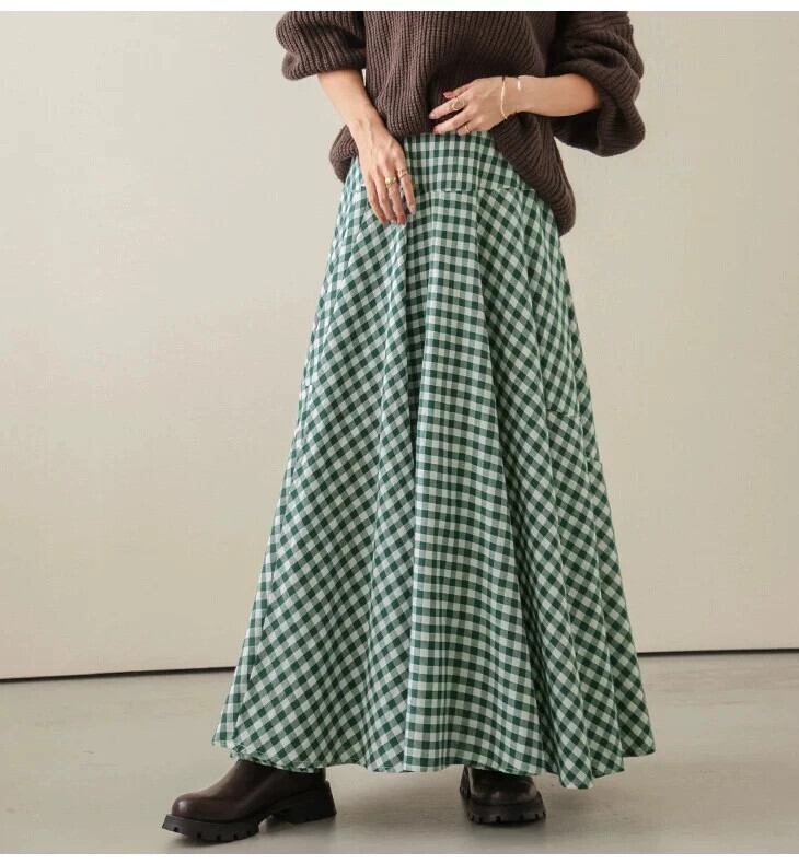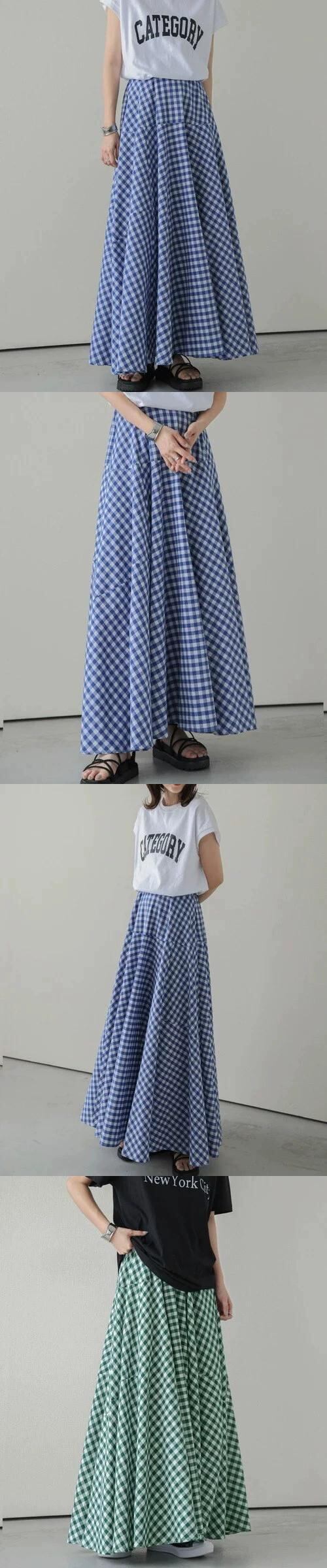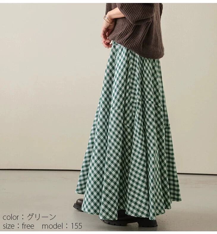 と南ロッテ 2023 春夏新作レディーススカート A ラインロングスカートハイウエストチェック柄スカート弾性スイングスカート ハイウェスト エラスティック 伸縮 スプリング 春物 サマー 夏物 Aライン cat831446496308