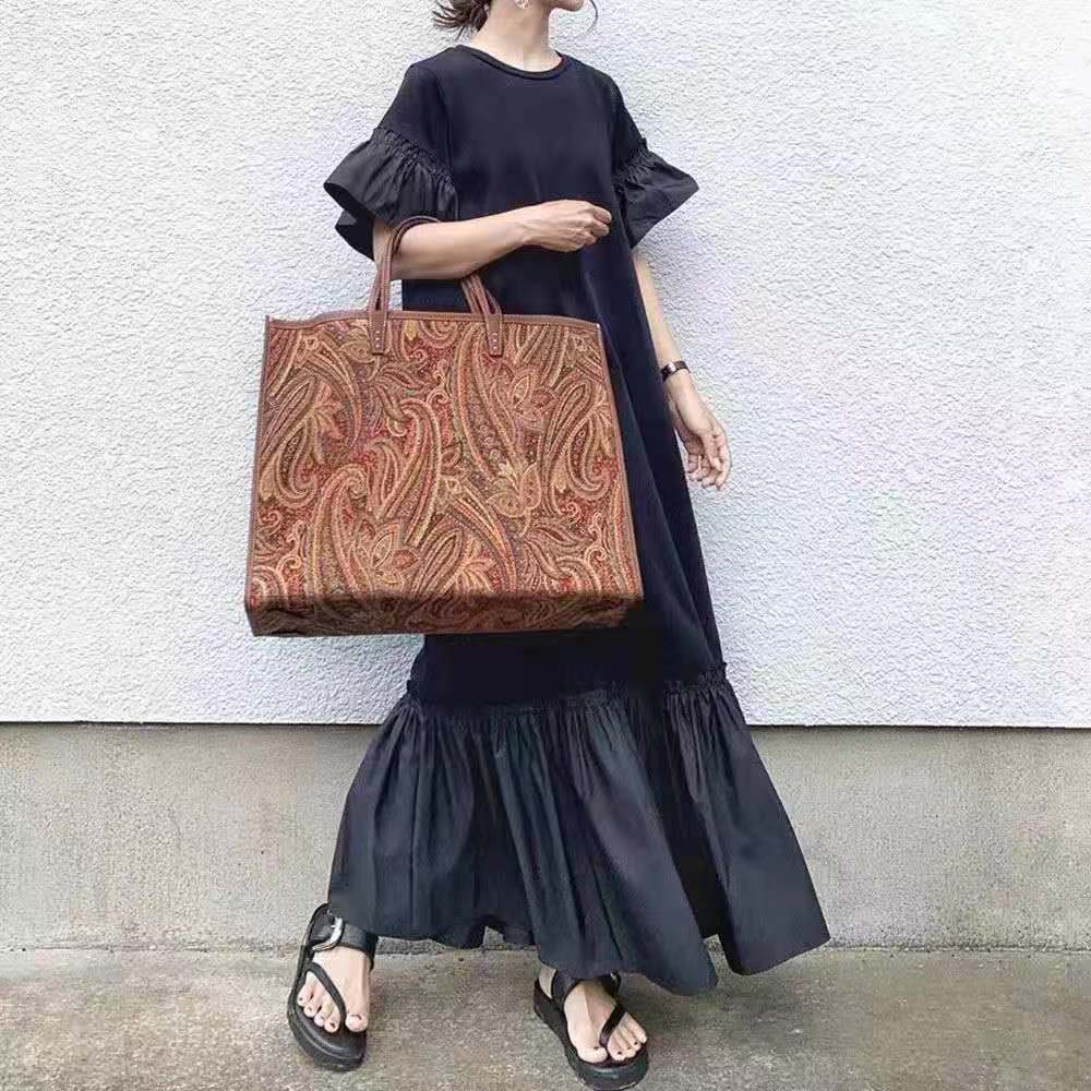 ese スタイル 2021 夏の新フリルスカート黒ラウンドネック気質スリムでルーズ膝丈ロングドレス女性 ブラック サマー 夏物 Oネック cat844109586817