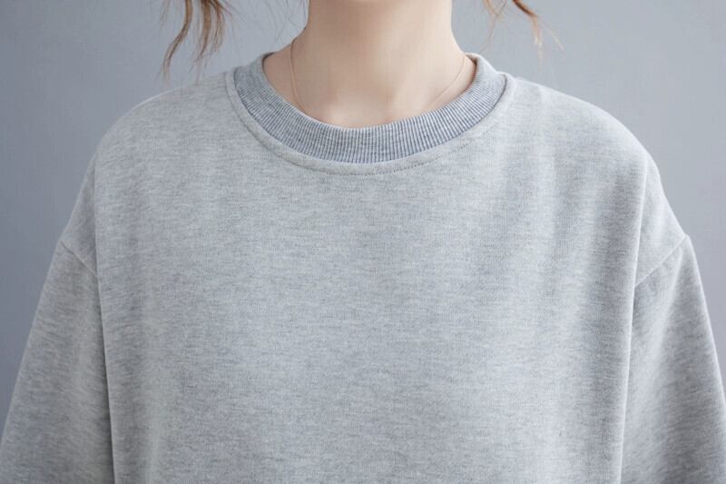 リアルS大きいサイズレディースプラスベルベットラウンドネックルーズプリーツ袖Aラインスカート秋冬無地セーターロングドレス 大きめサイズ オータム 秋物 ウィンター 冬物 Oネック ソリッドカラー cat874843005650