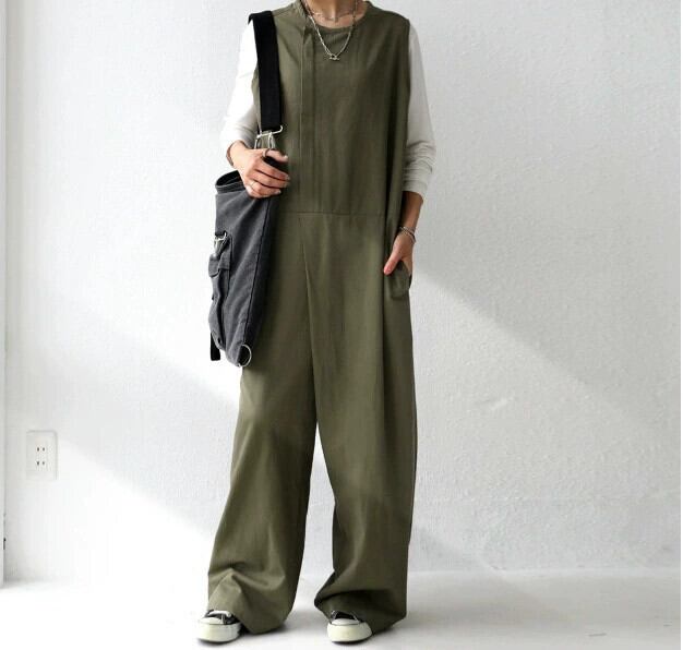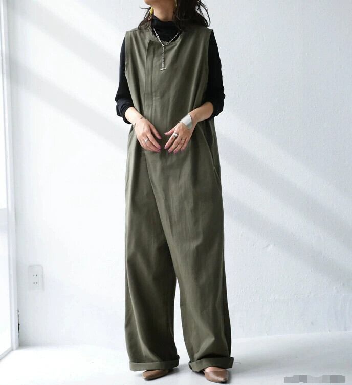 越境 ese 2021 秋と冬の新無地ノースリーブルーズポケットジャンプスーツカジュアルオーバーオールワイドレッグパンツ オータム 秋物 ウィンター 冬物 ソリッドカラー cat86078548537