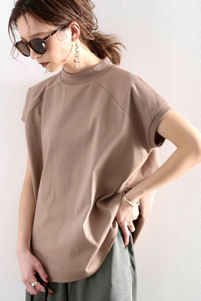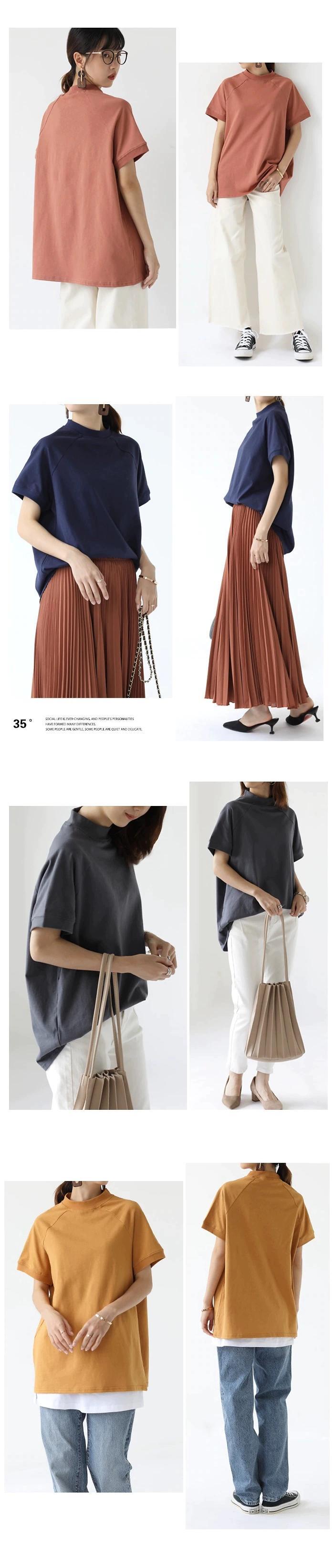 ese and style 2022 夏新無地ラグラン袖スタンドカラー綿半袖 Tシャツルーズプラスサイズレディーストップス コットン 大きめサイズ サマー 夏物 ソリッドカラー cat882860025437