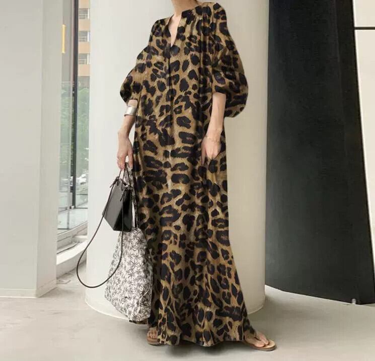 Amazon 熱い気質ヒョウ柄パフスリーブルーズボヘミアンシャツドレスレディース cat82749308907
