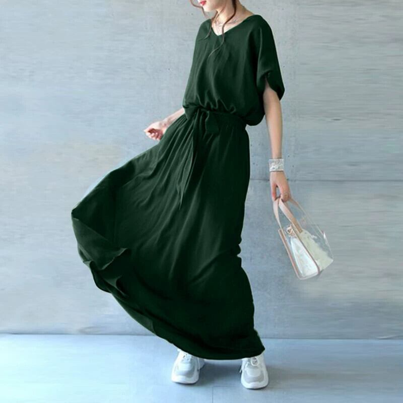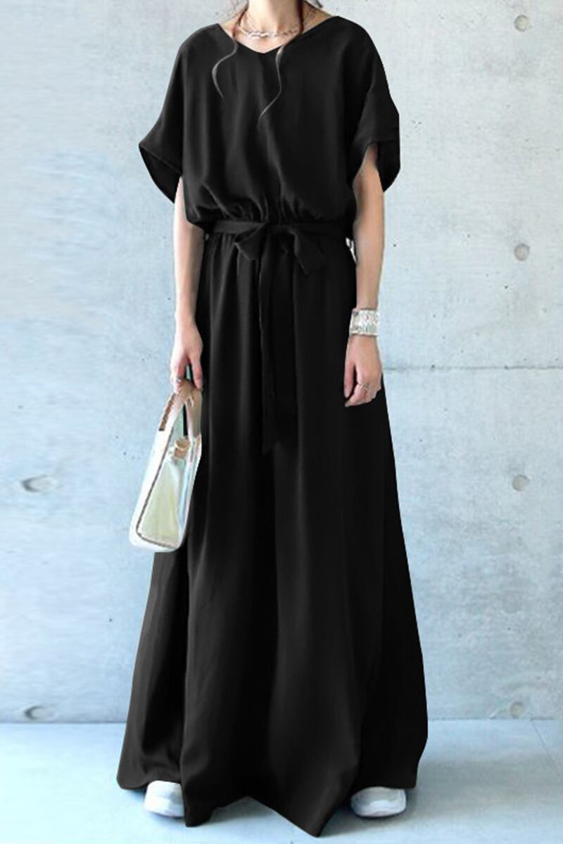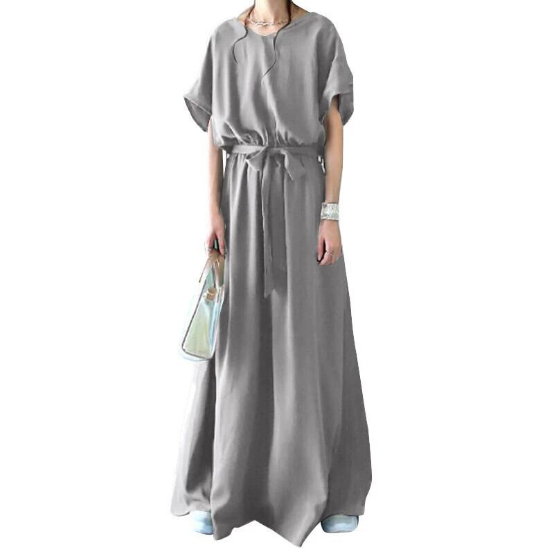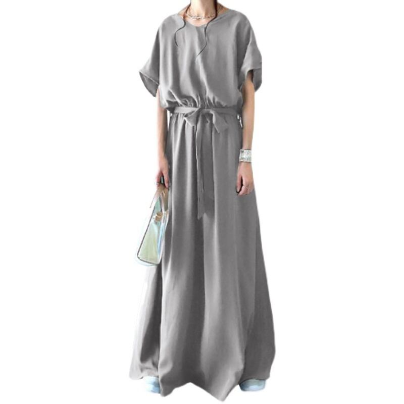 クロスボーダー ese V ネックベルトタイウエスト半袖ビッグスイングドレスレディース夏ゆったり大きいサイズ超ロングモップスカート 大きめサイズ サマー 夏物 ハーネス Vネック cat810682131424