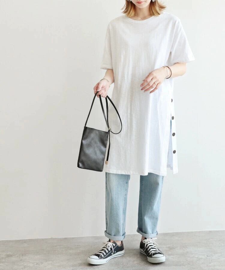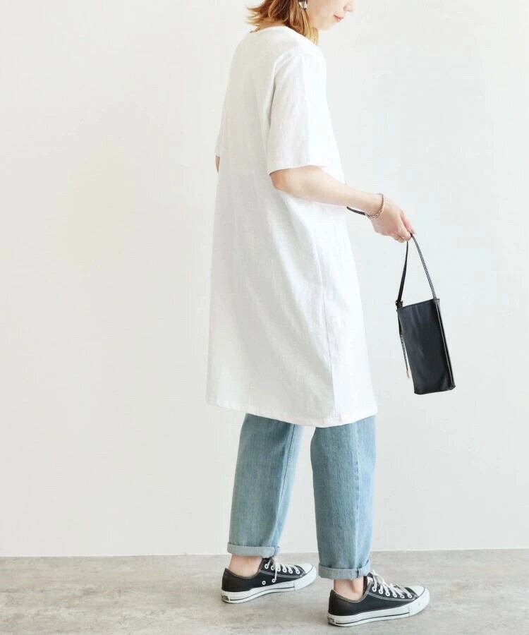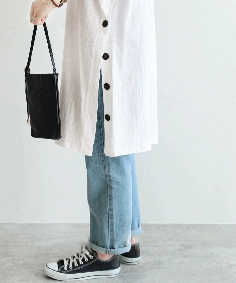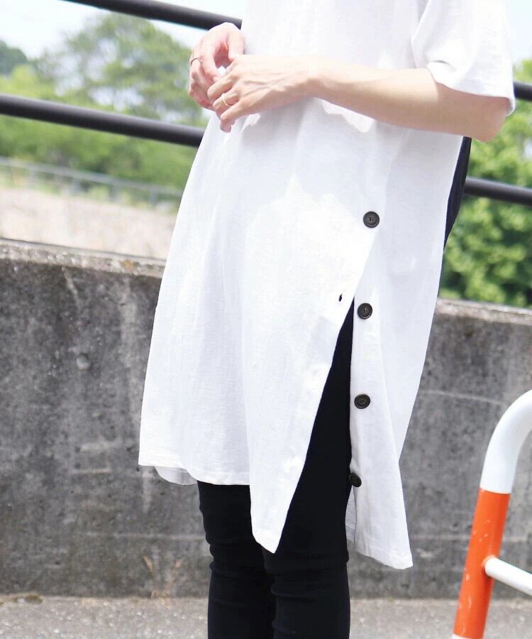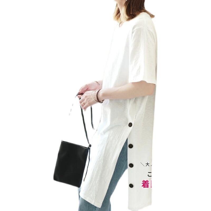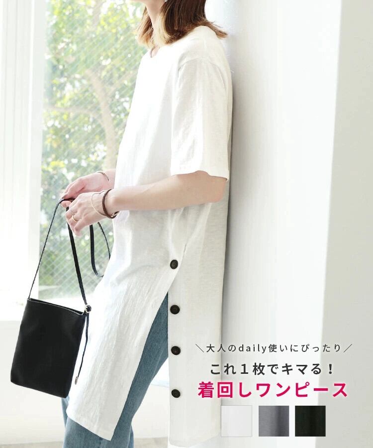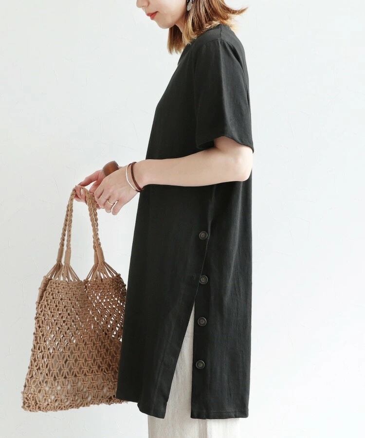 ese とスタイルの夏の新しい怠惰なルーズラウンドネックニットリネンコットン半袖裾スリットボタンドレス女性 サマー 夏物 Oネック cat818262755268