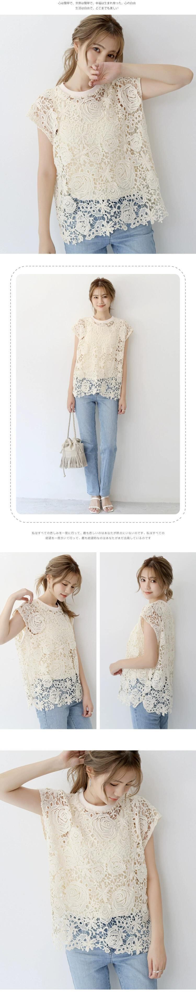 2021 ese and 気質レディースレースシャツトップ + ニットセーター半袖レディース Tシャツシースルーツーピーススーツ cat840810645162