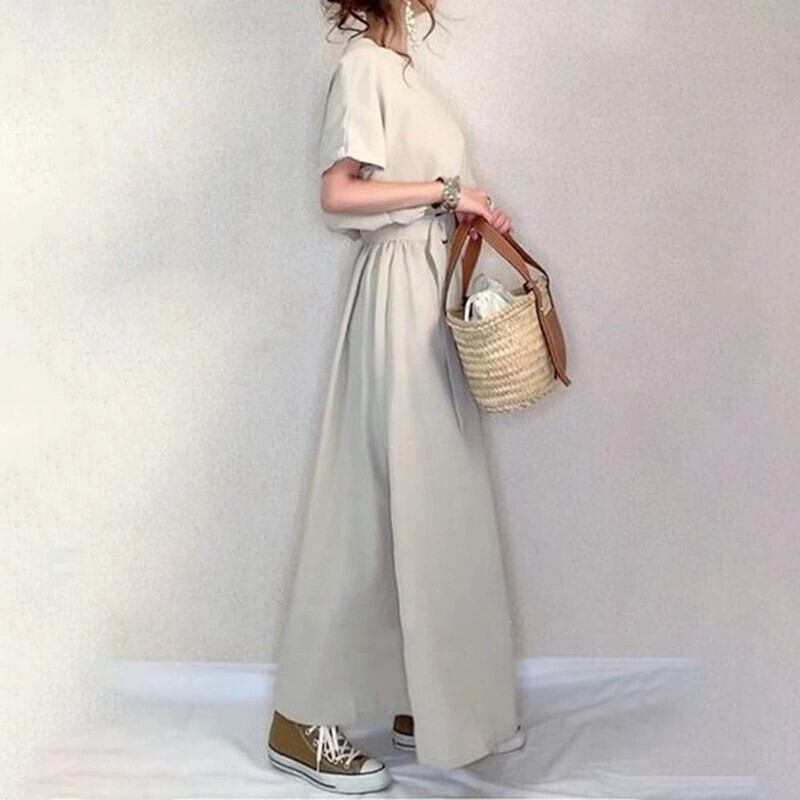 クロスボーダー ese 夏新作婦人服無地ビッグスイングドレス V ネック半袖ベルトウエスト痩身気質ロングスカート サマー 夏物 ハーネス Vネック ソリッドカラー cat828817539035