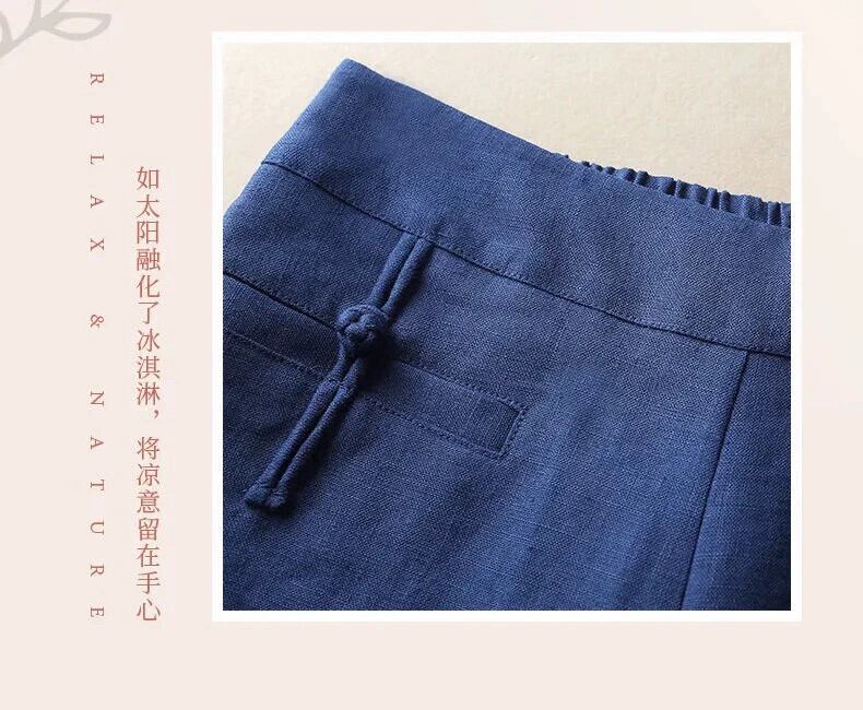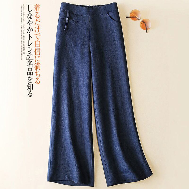 夏の新半弾性ハイウエストバックルスリムカジュアルパンツ綿とリネンの9点パンツワイドレッグパンツストレートレッグロングパンツ女性 コットン エラスティック 伸縮 サマー 夏物 cat887999578305