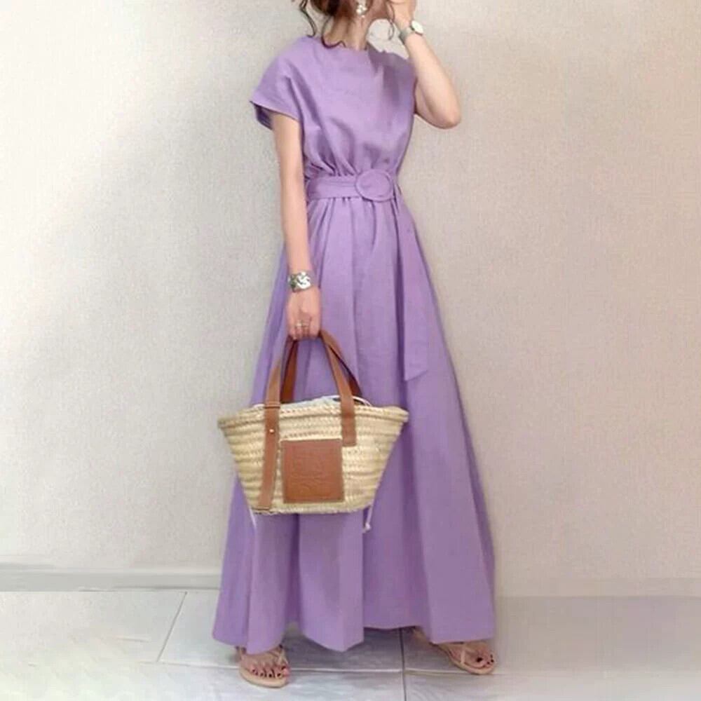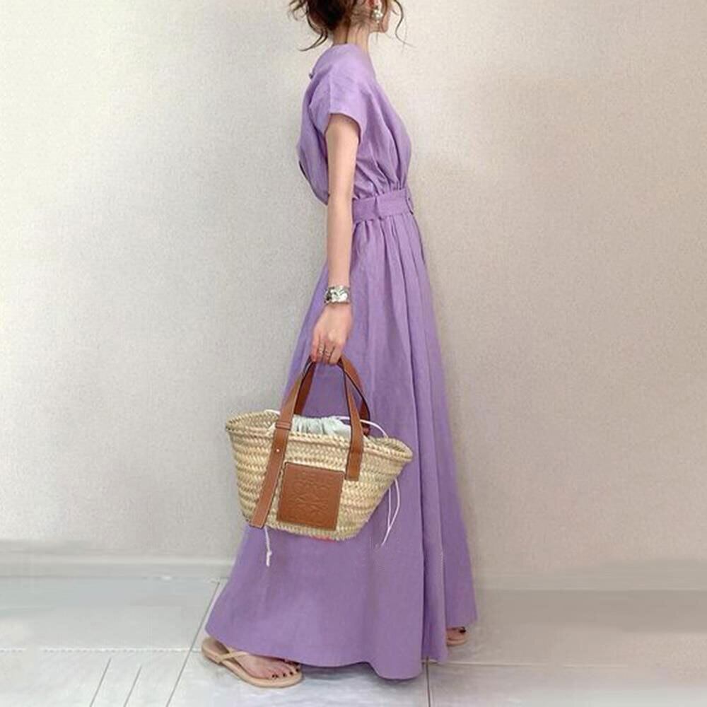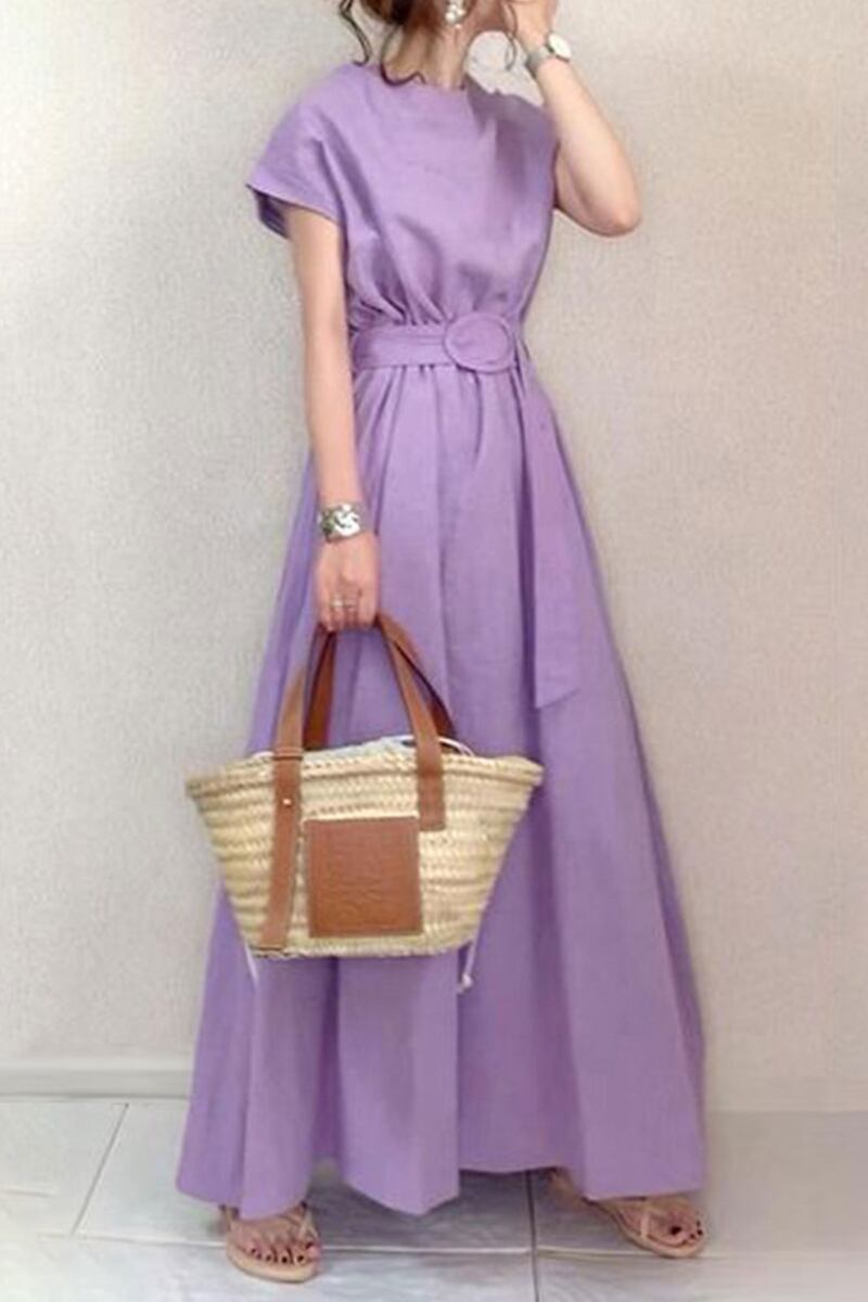 ese スタイル 2021 夏の新しいスタイルの文学的で芸術的な大きなスイングスカートベルト付きウエストは緩いプラスサイズのドレス膝上のロングスカート 大きめサイズ サマー 夏物 ハーネス cat820063674768