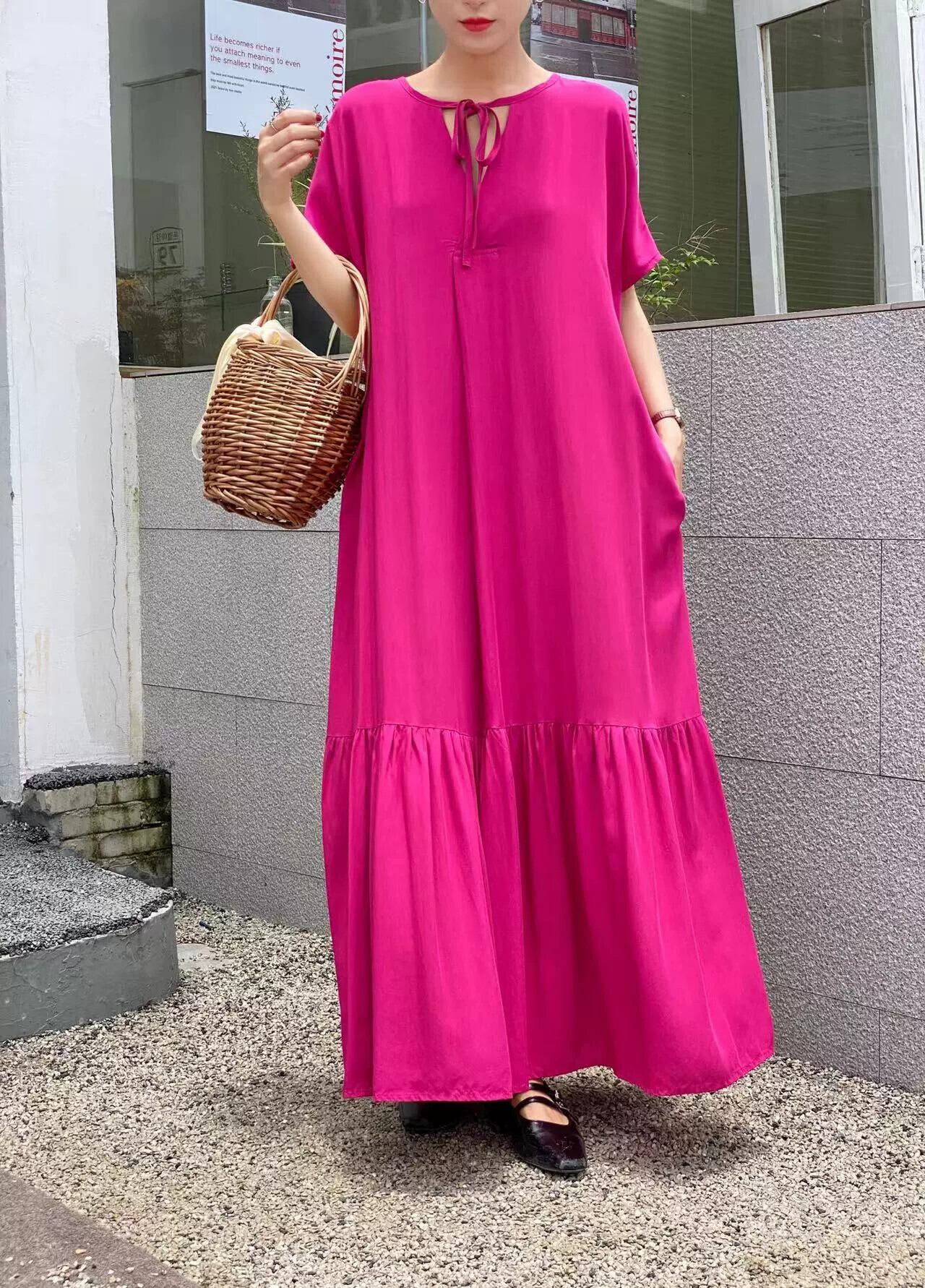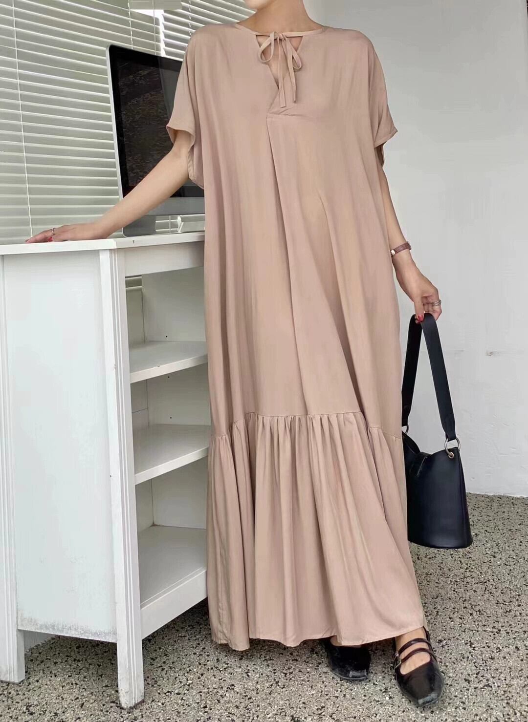 ボヘミアンホリデースタイルの夏の新しい大きいサイズのルーズタイラウンドネックロングドレス、膝上のフリル付き ラッフル 大きめサイズ サマー 夏物 Oネック cat8332678853
