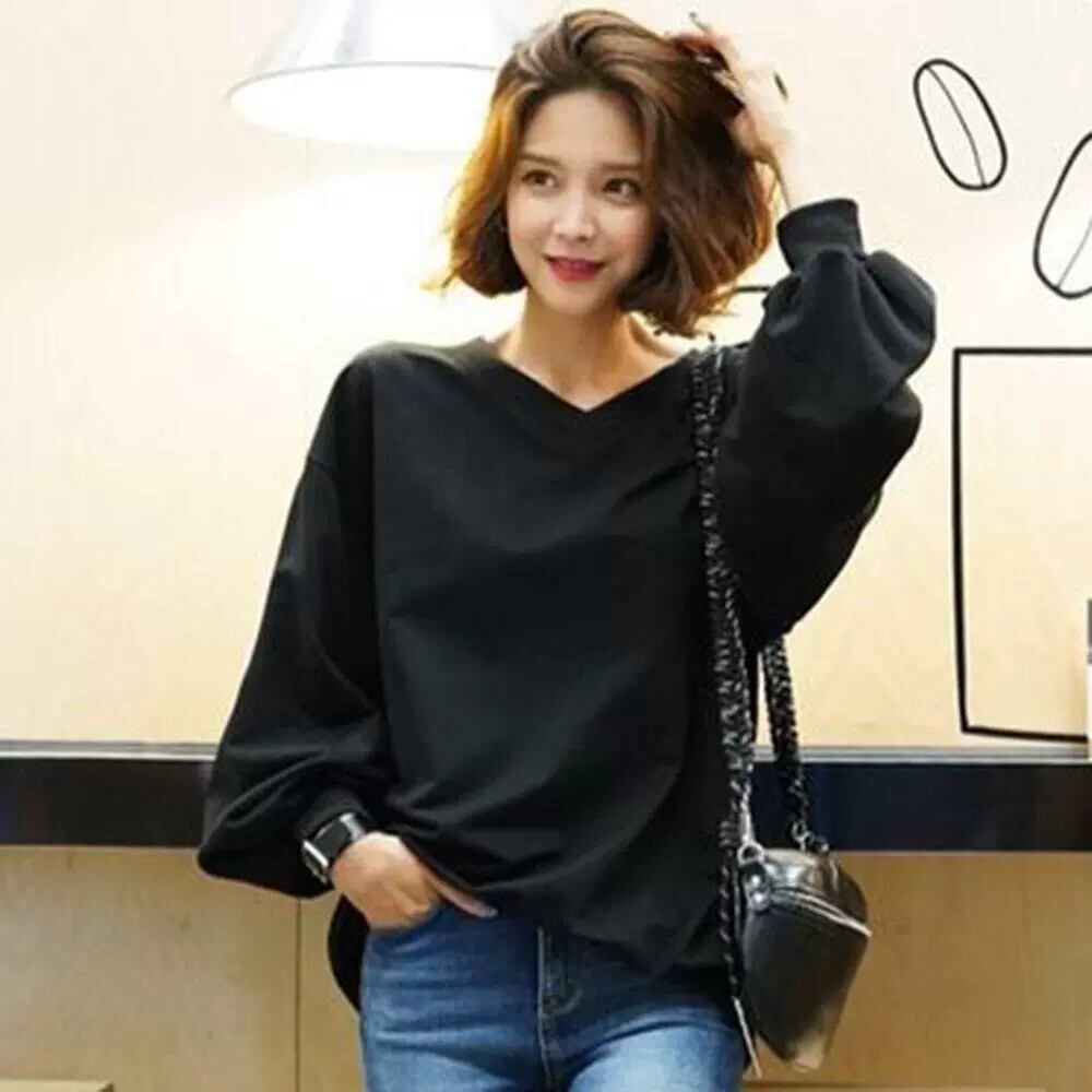 ese and style シンプルでルーズな婦人服 2022 春夏新作 V ネックプルオーバーオールマッチランタンスリーブ長袖トップ ロング スプリング 春物 サマー 夏物 Vネック cat843461389266