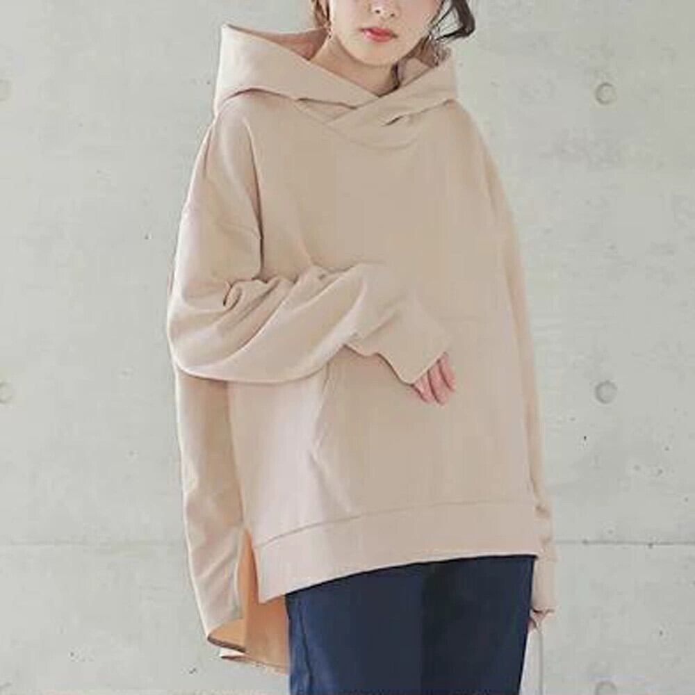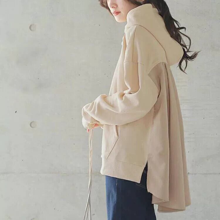 越境爆発婦人服イン楽天風シンプルスプライシングレトロセータールーズフード付き長袖プルオーバートップ ロング cat864130603416
