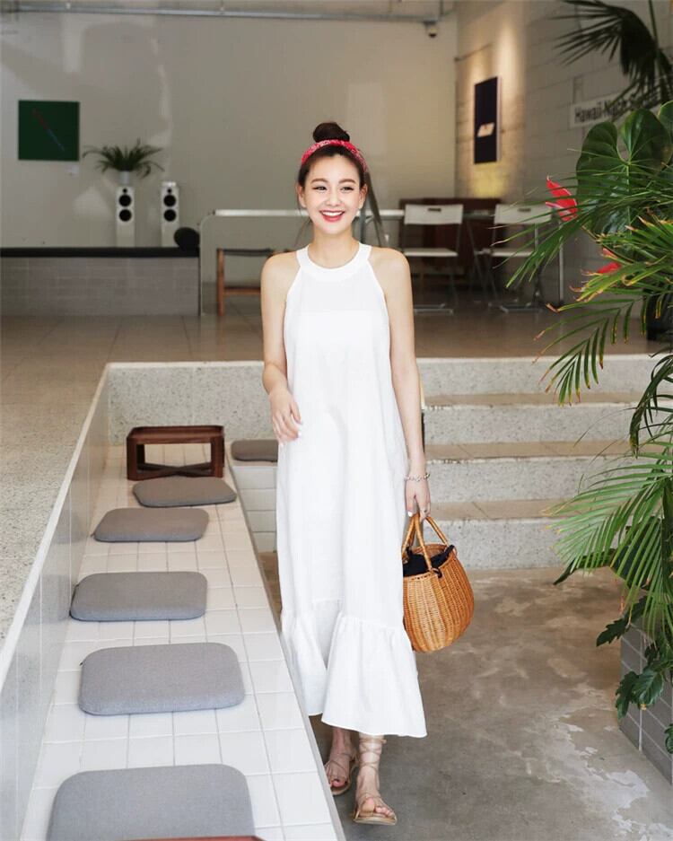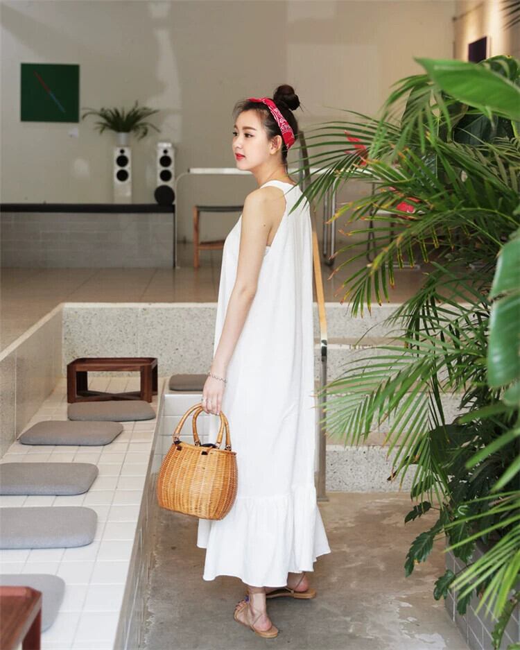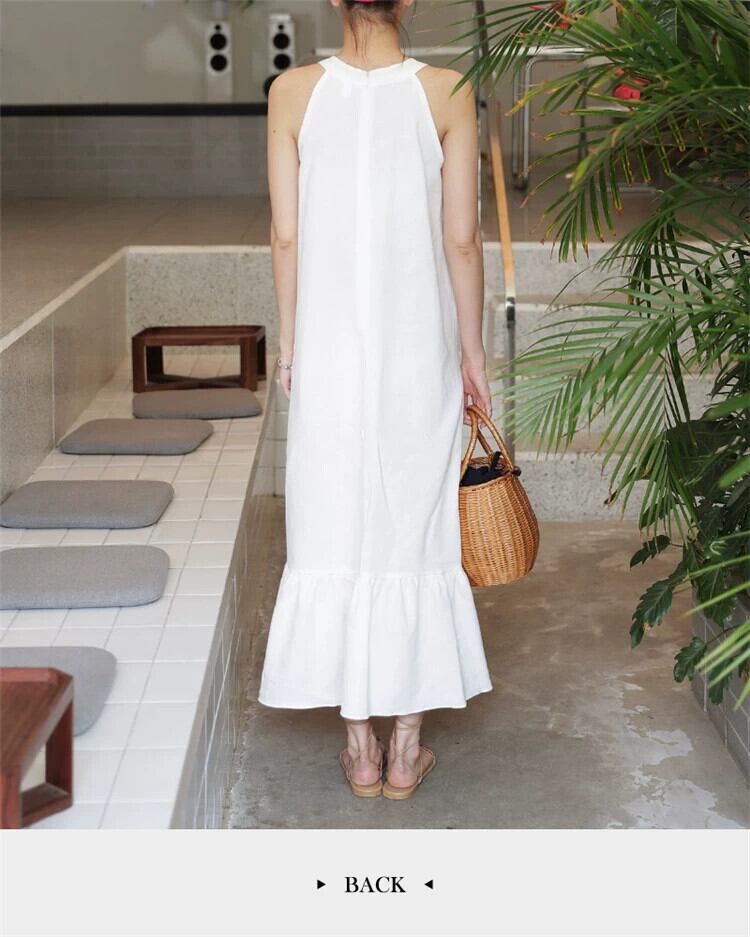2022 夏休みスタイルフリル無地綿とリネンのノースリーブドレスロングスカート首ストラップレスベストスカート女性 コットン サマー 夏物 ソリッドカラー cat895791245831