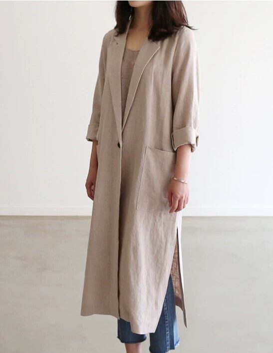 2023 春と秋のスーツ襟ウインドブレーカー女性のミッドレングスリネン小さなスーツバージョンルーズカジュアルコットンリネン薄手のコート スプリング 春物 オータム 秋物 cat833428394952