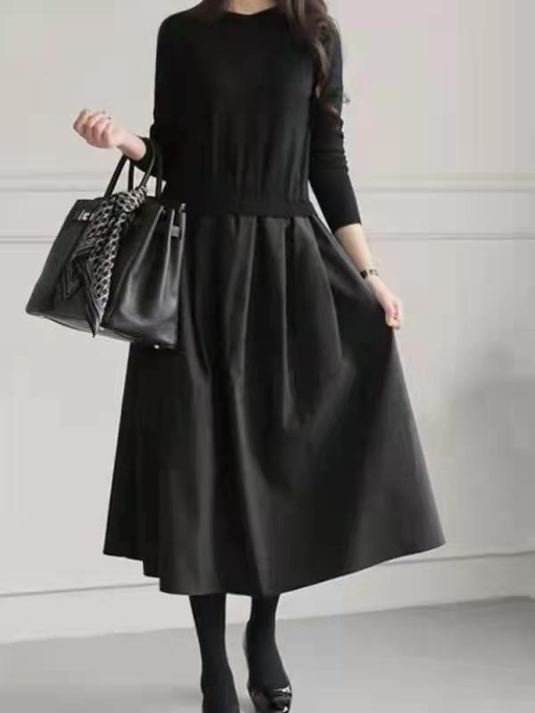 2022秋冬バージョンの新しいロングスタイル気質ボトミングセータースカートブラックルーズスリムステッチニットドレス オータム 秋物 ウィンター 冬物 cat890826266318