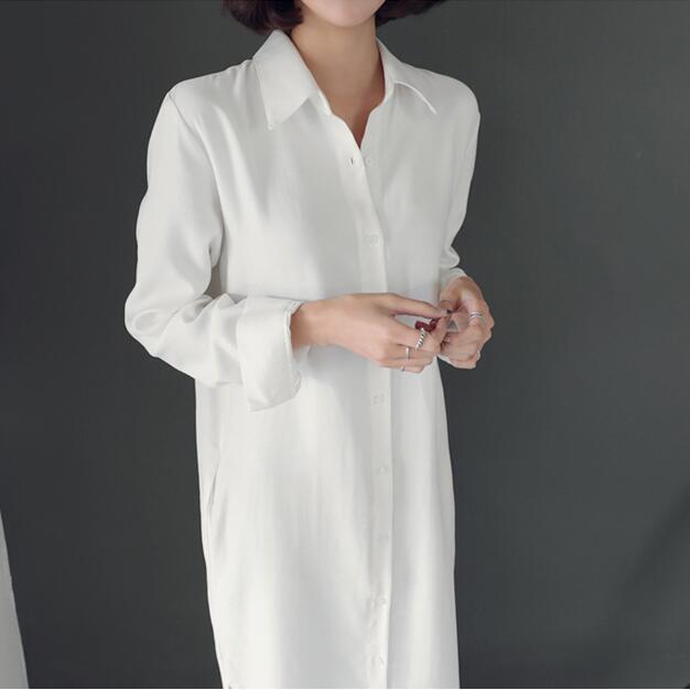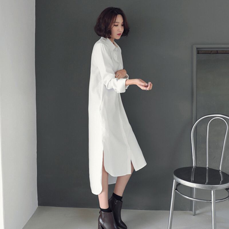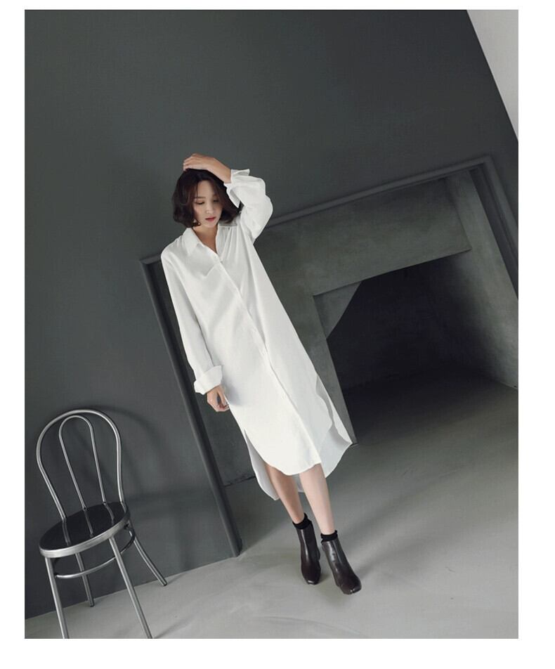 スーパーロング白シャツスカート 2023 スタイルシャツレディースデザイン感ニッチ膝上ルーズスリムカジュアルドレス ホワイト cat830595279572