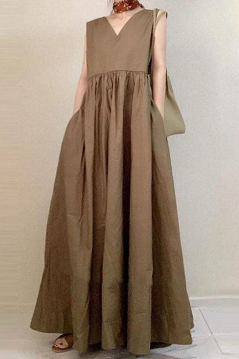 South の 2022 夏の新しい無地 V ネックノースリーブ A ラインスカートビッグスイングルーズドレス Eign スタイル薄いスーパーロング サマー 夏物 Vネック Aライン ソリッドカラー cat879167600711