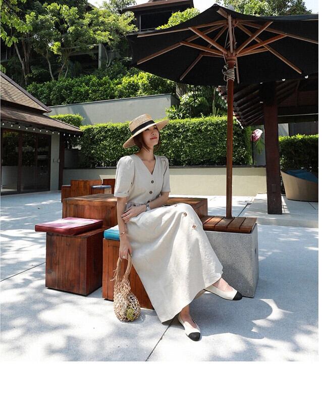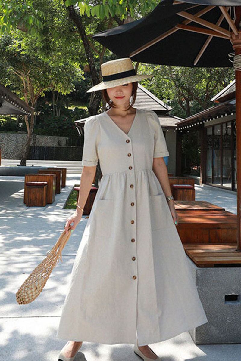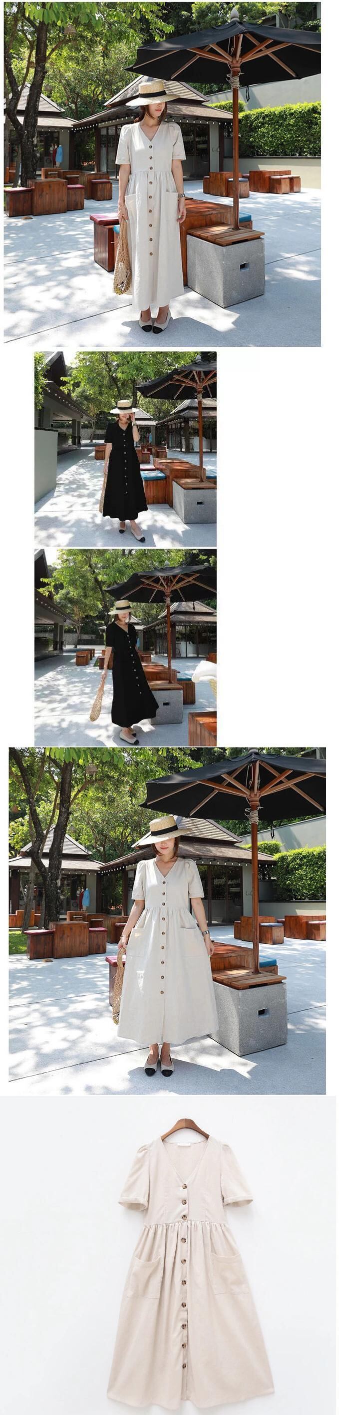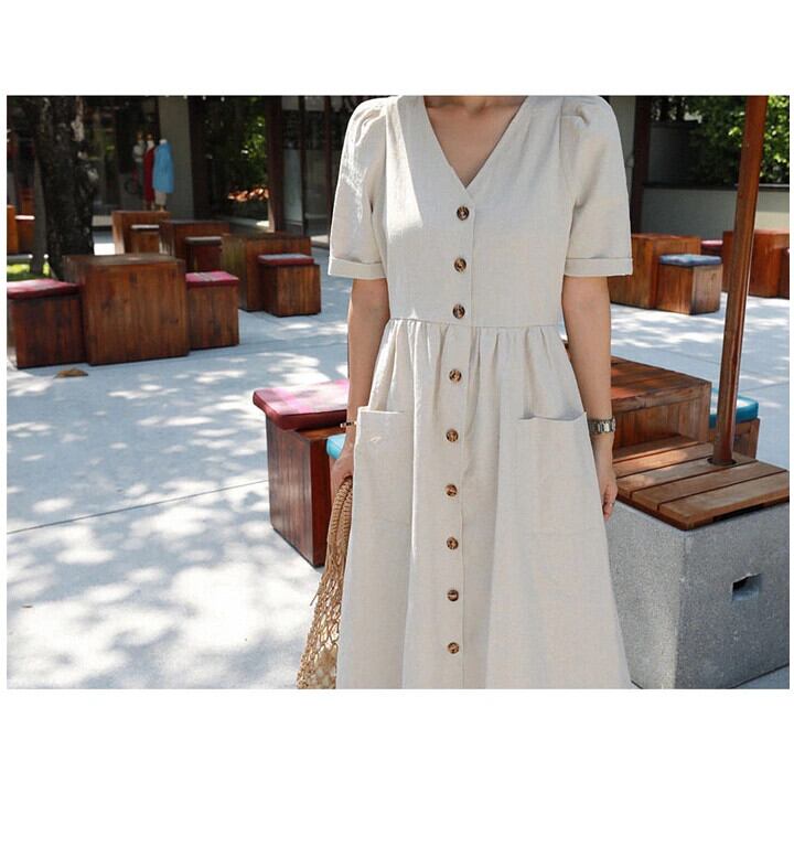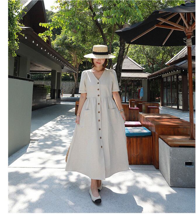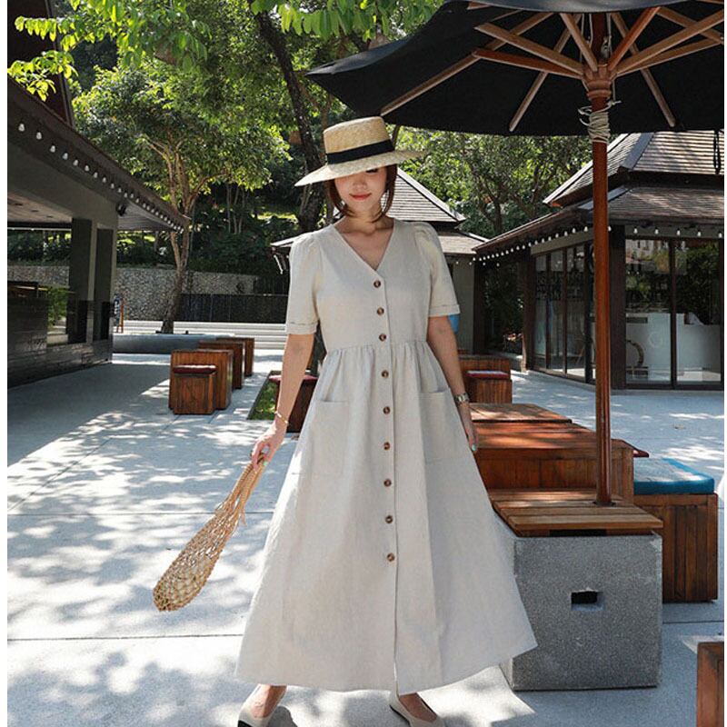 バージョンのレトロな文学と芸術の超長綿リネンシャツドレス女性 2022 春と夏の新しい緩い大きいサイズのダブルポケット ロング コットン 大きめサイズ スプリング 春物 サマー 夏物 cat88049748771