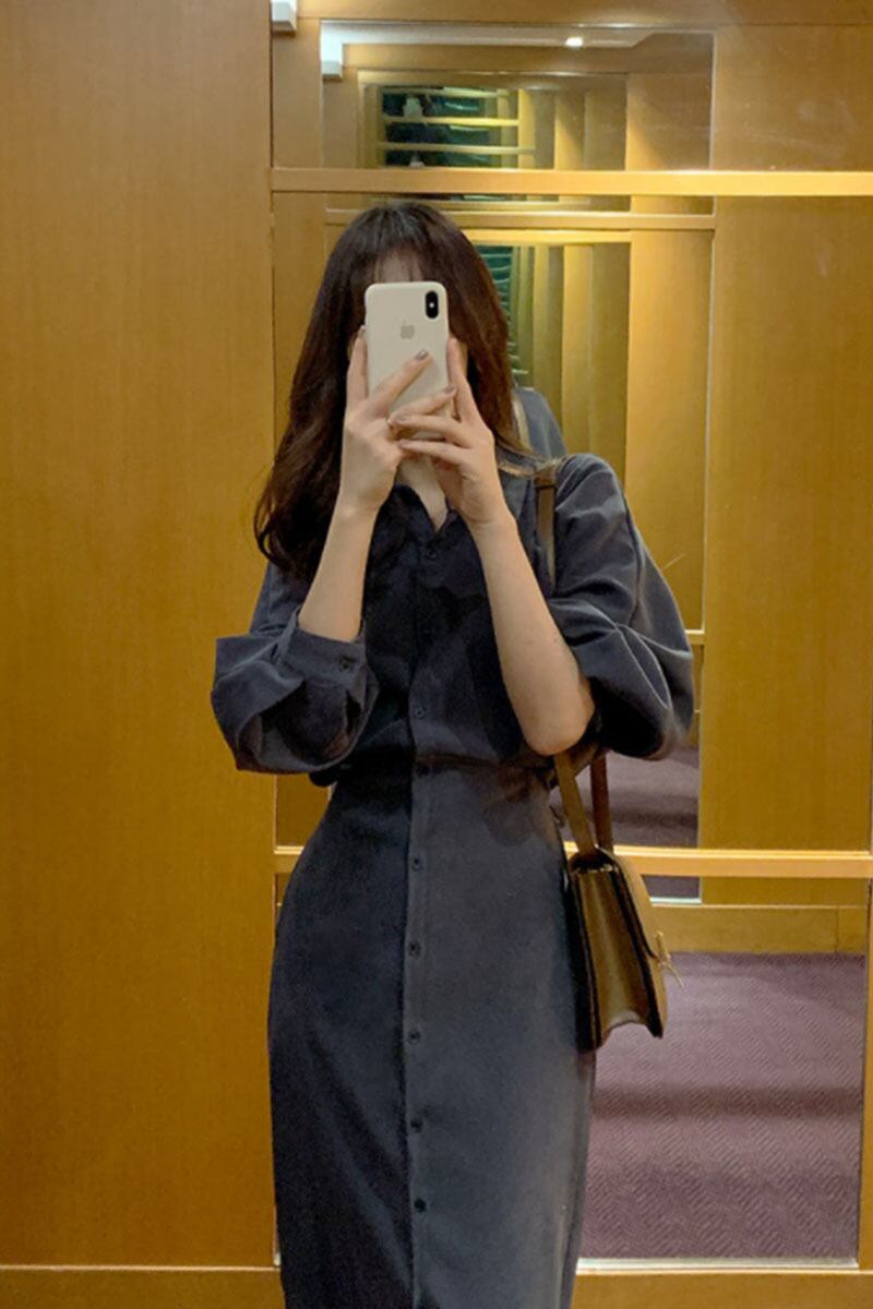 2022 春の新作リネンコットンドレスルーズフレンチウエストスリムレトロ気質ミッドレングスシャツスカート女性 スプリング 春物 cat828201640073