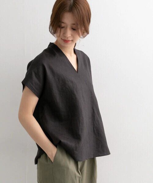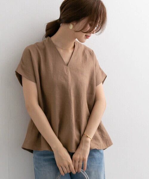 ese ルーズ V ネックリネン半袖トップ女性の 2022 夏ショートシンプルな無地文学フレッシュコットンリネンシャツ サマー 夏物 Vネック ソリッドカラー cat872006980732
