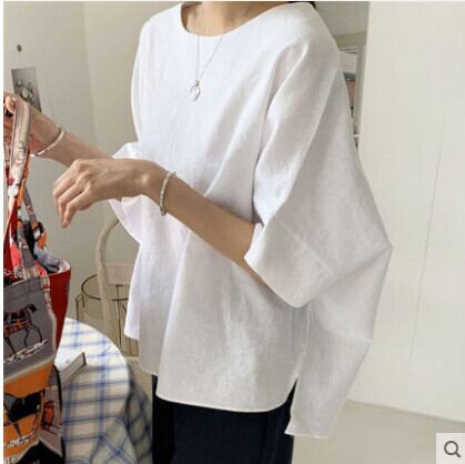 コットンとリネンのシャツ女性のレトロな香港スタイルバージョン緩い大きいサイズの脂肪ミリメートル怠惰な風薄いカジュアルシャツオールマッチトップ 大きめサイズ cat86847769376