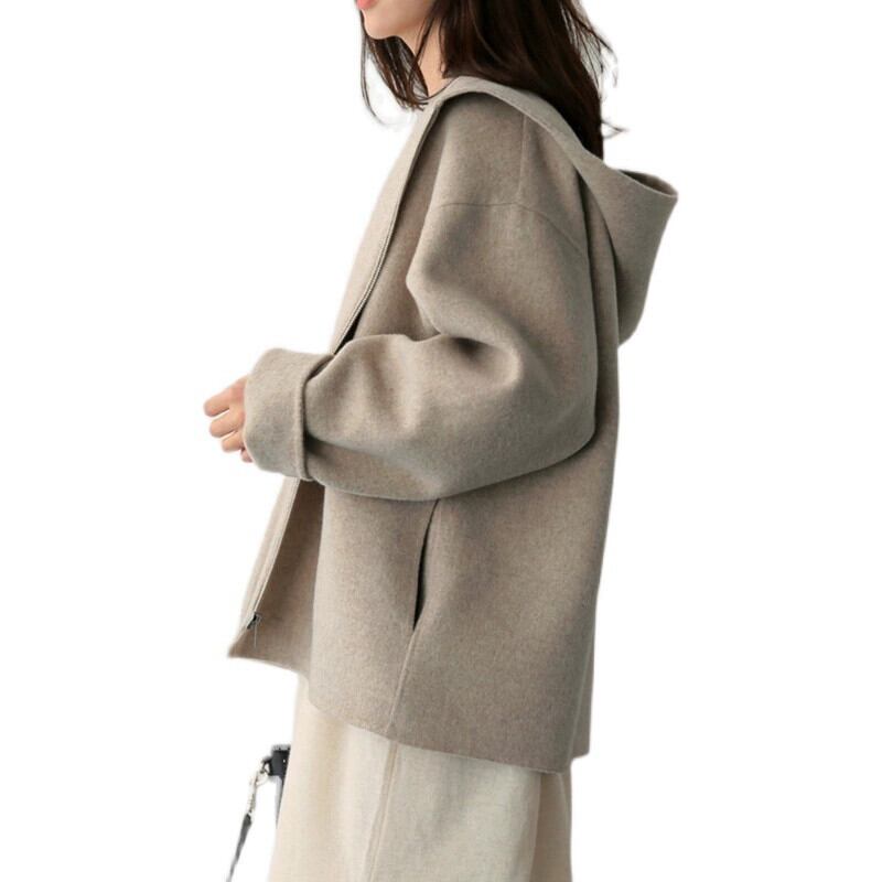 フード付きウールコートの女性のショートスタイル 2021 春と秋の新バージョンルーズソリッドカラーの小さなカジュアルウールコート スプリング 春物 オータム 秋物 cat814280577157