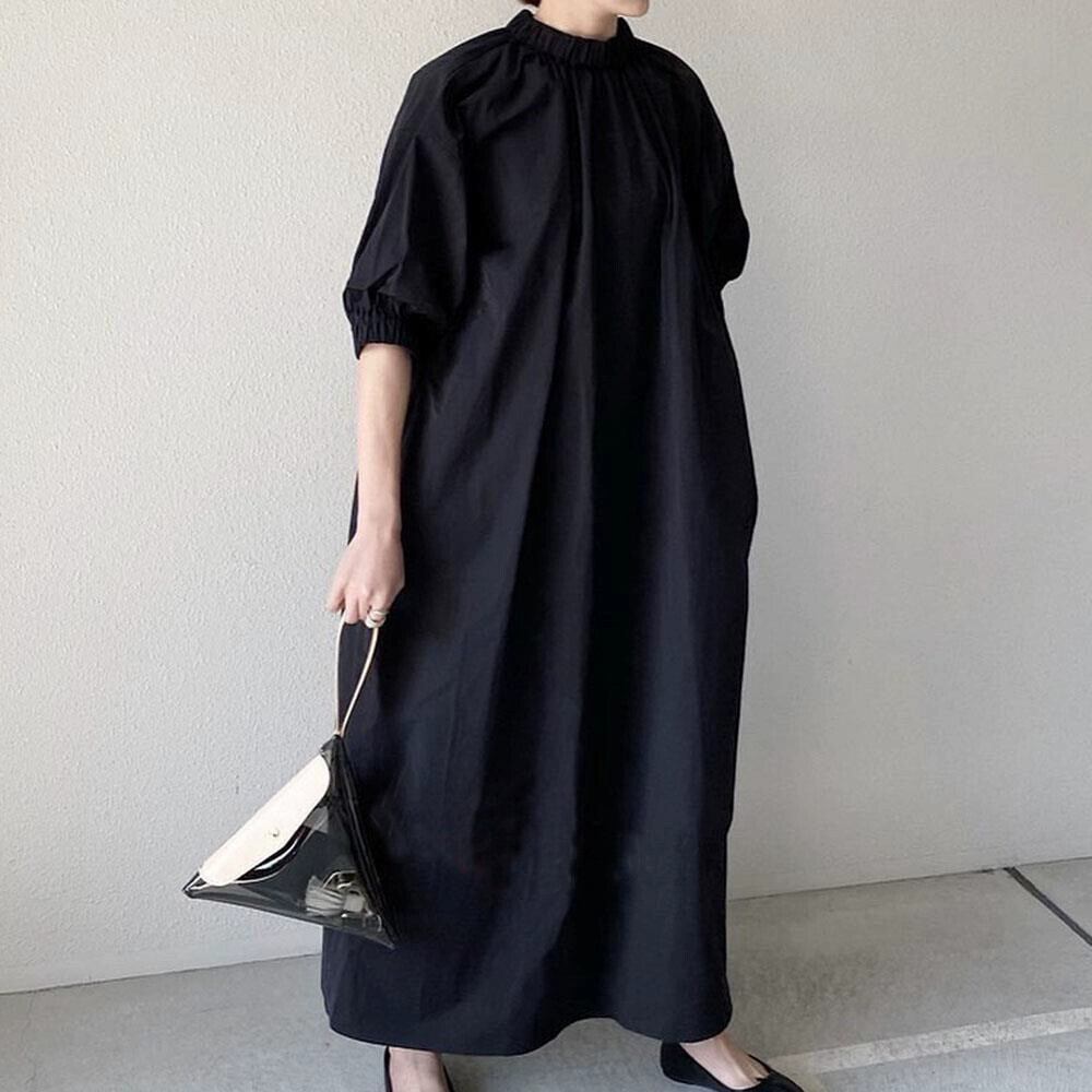 ese ドレス 2023 夏の新婦人服無地スタンドカラースカート緩い気質 A ラインスカートミッドレングススカート サマー 夏物 Aライン ソリッドカラー cat849308129755