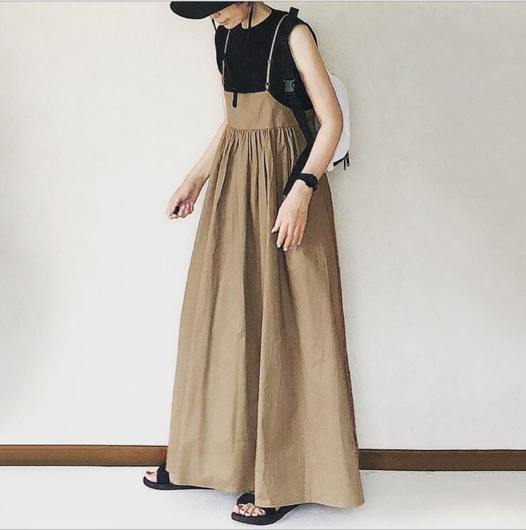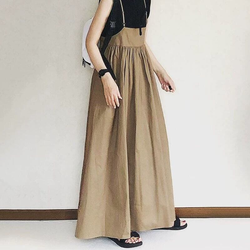 ese スタイル 2022 夏の女性のルーズプリーツロングサスペンダードレスシンプルな無地ハイウエスト痩身 A ラインスカート ハイウェスト サマー 夏物 Aライン ソリッドカラー cat824674599114