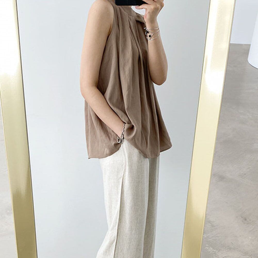 婦人服 2022 夏のスタイルピュアカラーレディ気質軽い馴染みのあるスタイルルーズファッションノースリーブプルオーバーシャツ女性 サマー 夏物 cat816564409796