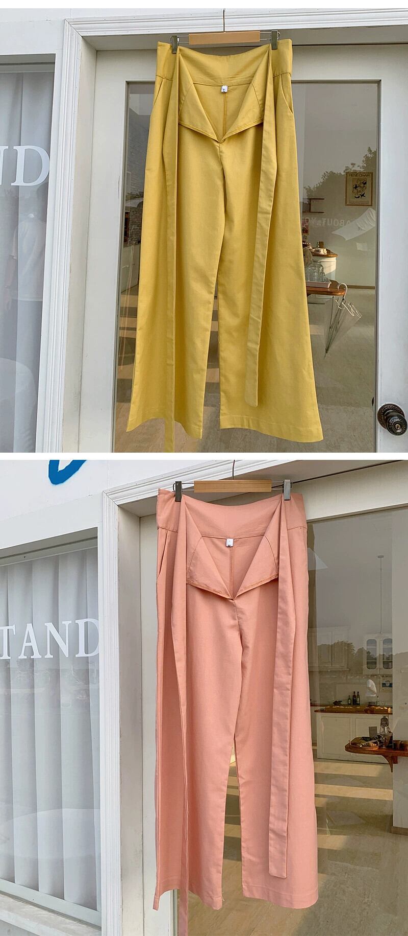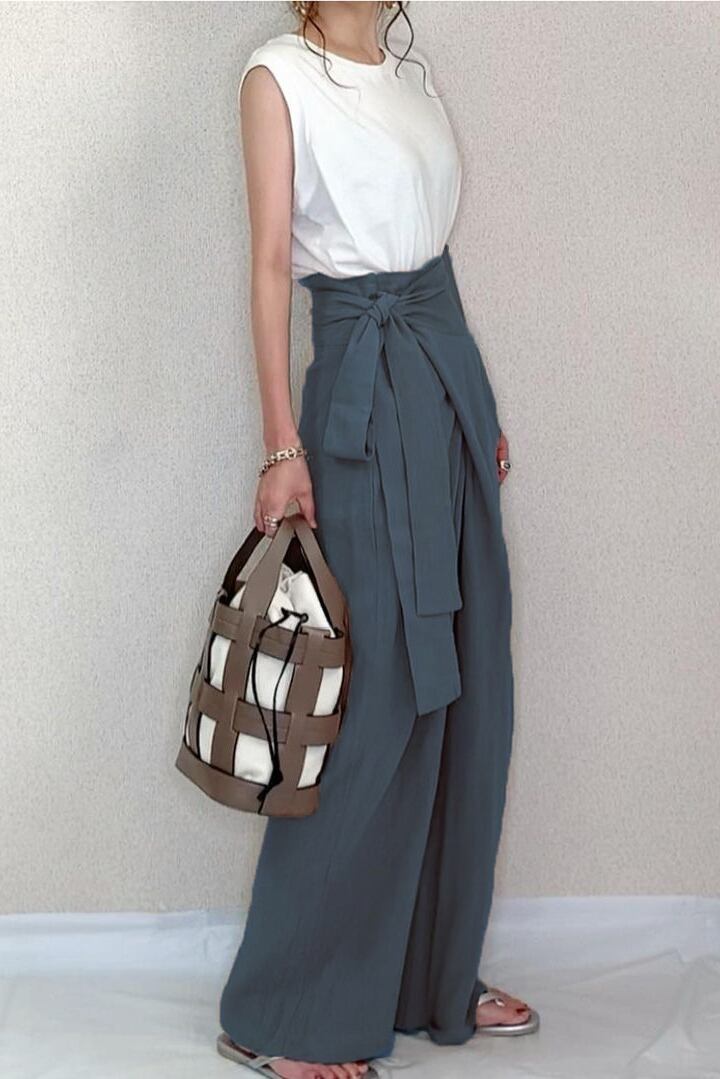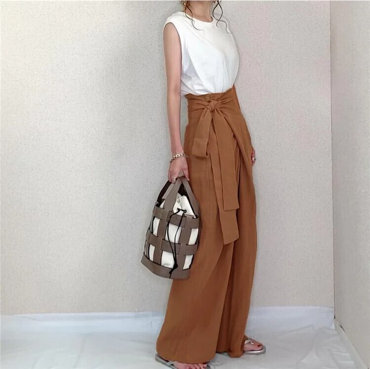 クロスボーダー ese とスタイル気質通勤ハイウエストサイドストラップちょう結び無地ワイドレッグツーリングカジュアルファッションパンツ女性 ハイウェスト リボン ソリッドカラー cat862652128164