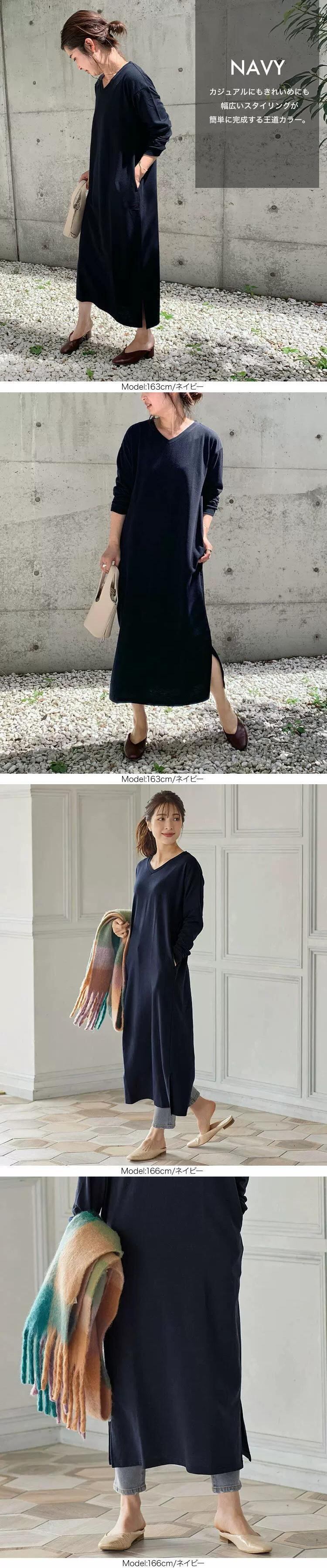 と南の新製品 2022 秋冬厚みのあるセータードレスの女性の V ネックルーズスリムストレートニット膝上ロングスカート オータム 秋物 ウィンター 冬物 Vネック cat810158571890