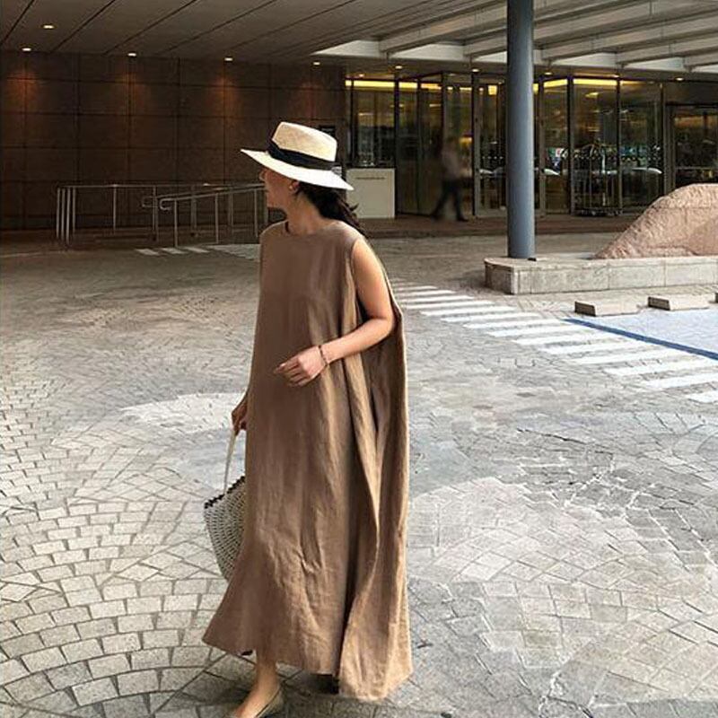 南の東大門2022夏新作綿麻ルーズドレスミドル丈文学気質ノースリーブベストドレス コットン サマー 夏物 cat827794385627
