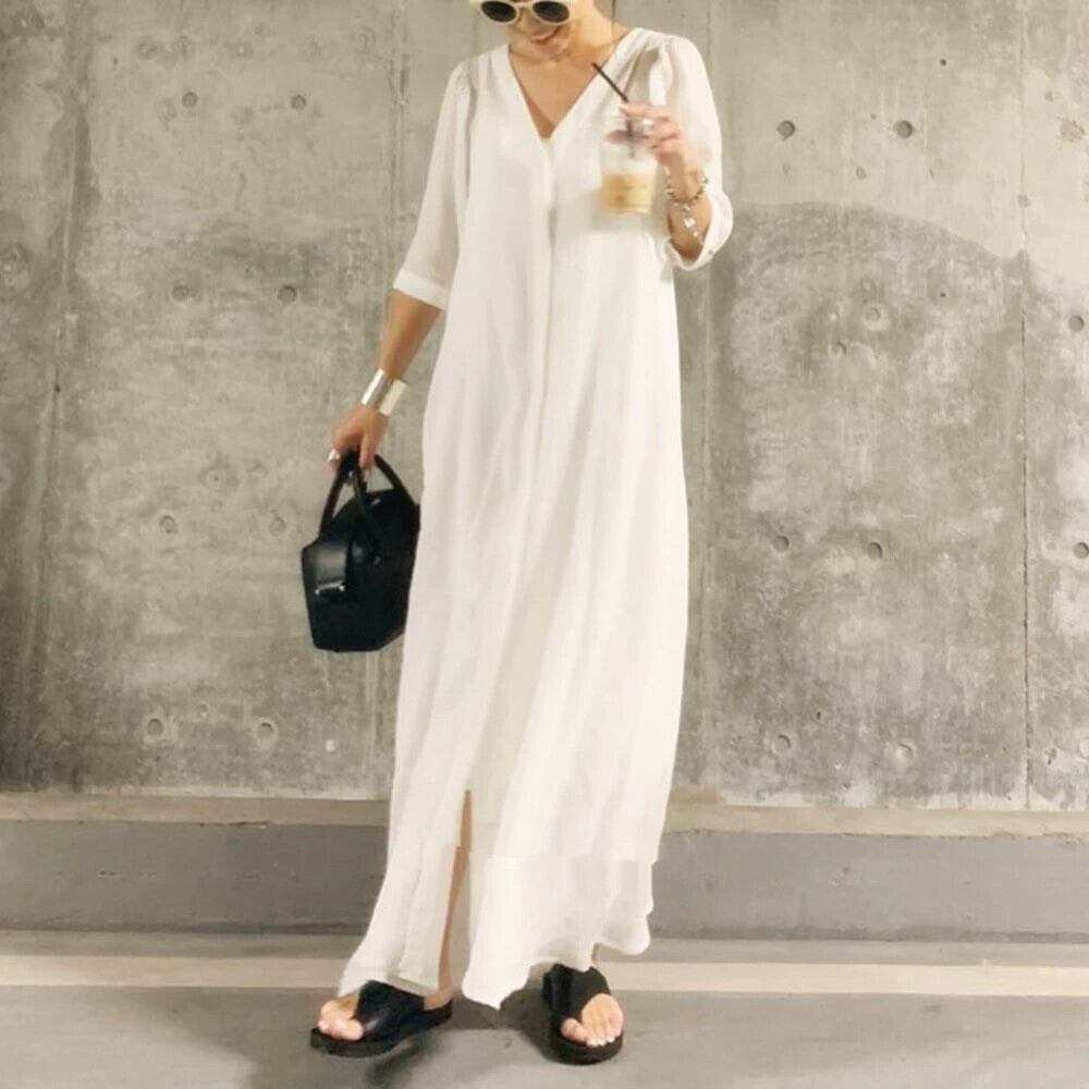 Amazonのベストセラー ese style 2021春夏新作 優しい風ビッグスイングワンピース Vネックロングスカート インナー付き2点セット スプリング 春物 サマー 夏物 cat847070972312