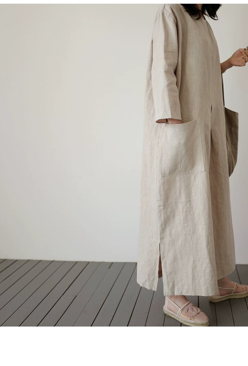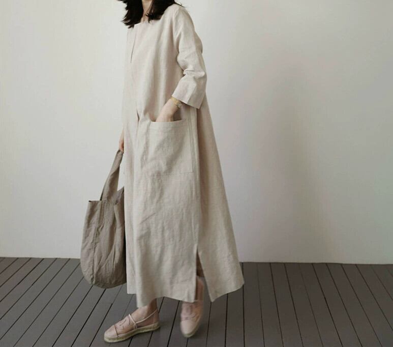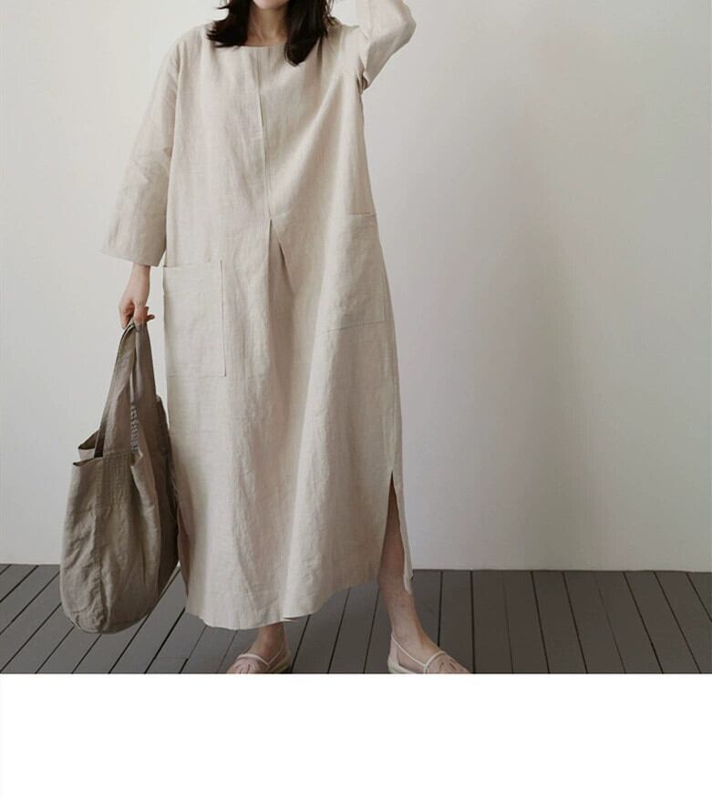 シックなコットンとリネンのドレスの女性のミドル丈バージョンルーズな大きいサイズのファッション大きなポケットリネンカジュアルスカート 大きめサイズ cat82459005440