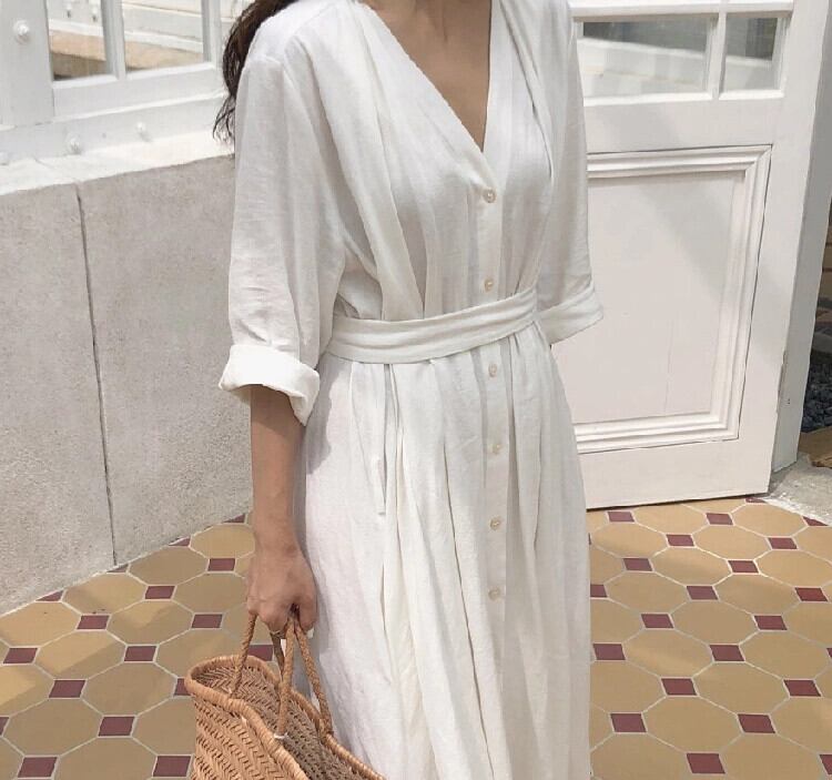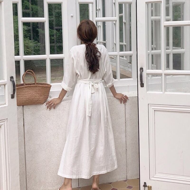 2022 春コットンリネンドレスの女性のネクタイウエスト痩身スーパー妖精レトロ山本桔梗スカートオーバー膝シャツスカート スプリング 春物 フラワーデザイン cat838565808578