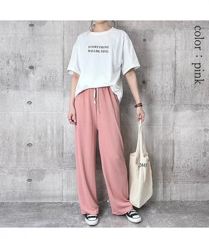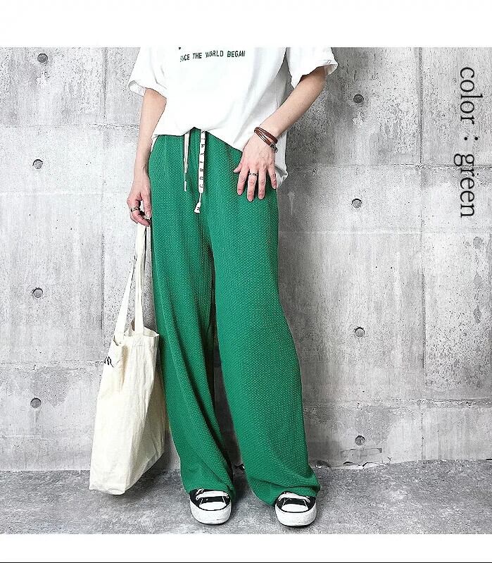 ワッフル パフ パンツ ドレープ ハイウエスト ワイドレッグ パンツ レディース 夏 カジュアル パンツ モップパンツ ルーズ スリム ストレート パンツ ハイウェスト サマー 夏物 cat856411532940