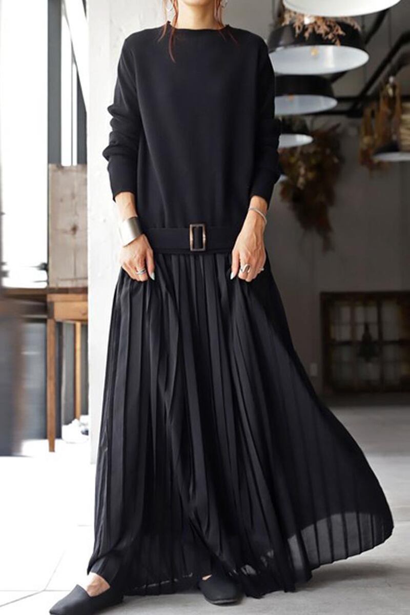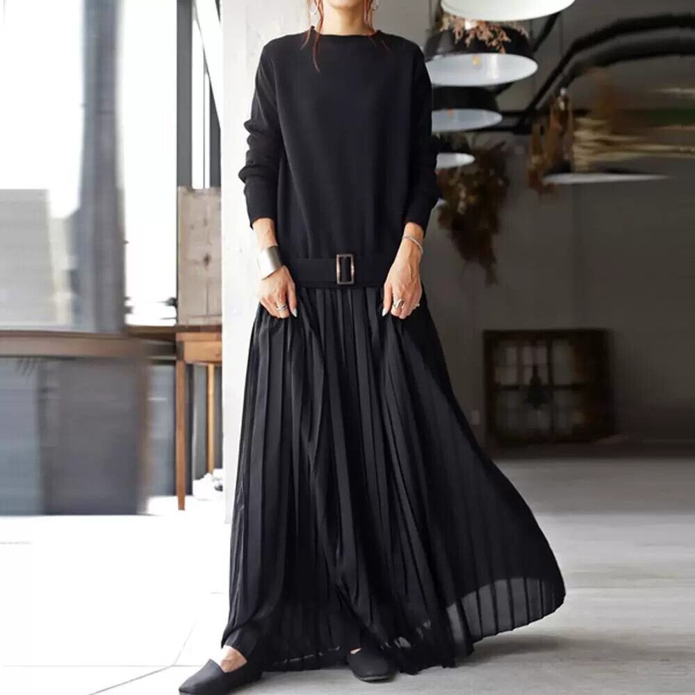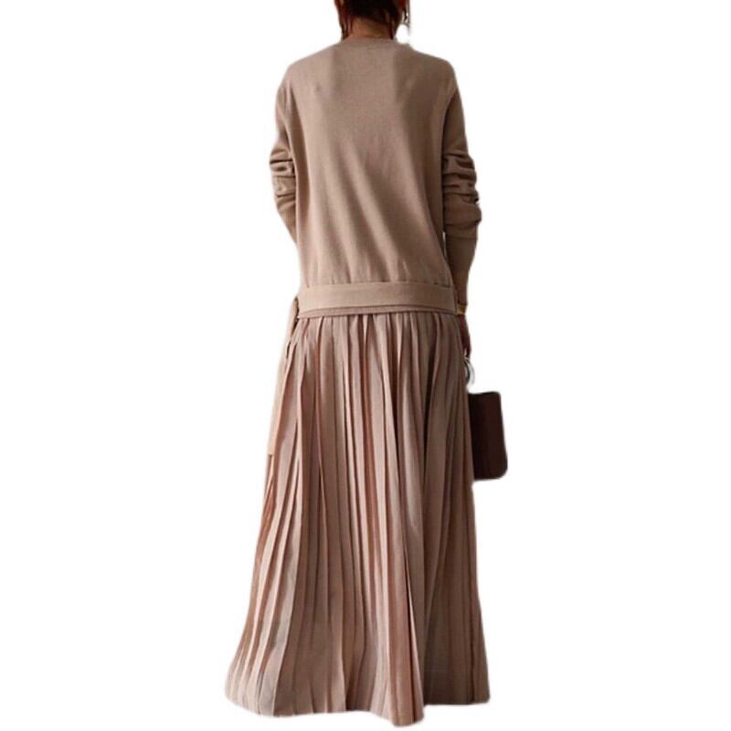 Amazonのベストセラー婦人服春秋の新スタイルベルト付きプルオーバー気質背の高いニットステッチプリーツロングスカート女性 スプリング 春物 オータム 秋物 ハーネス cat837516229903