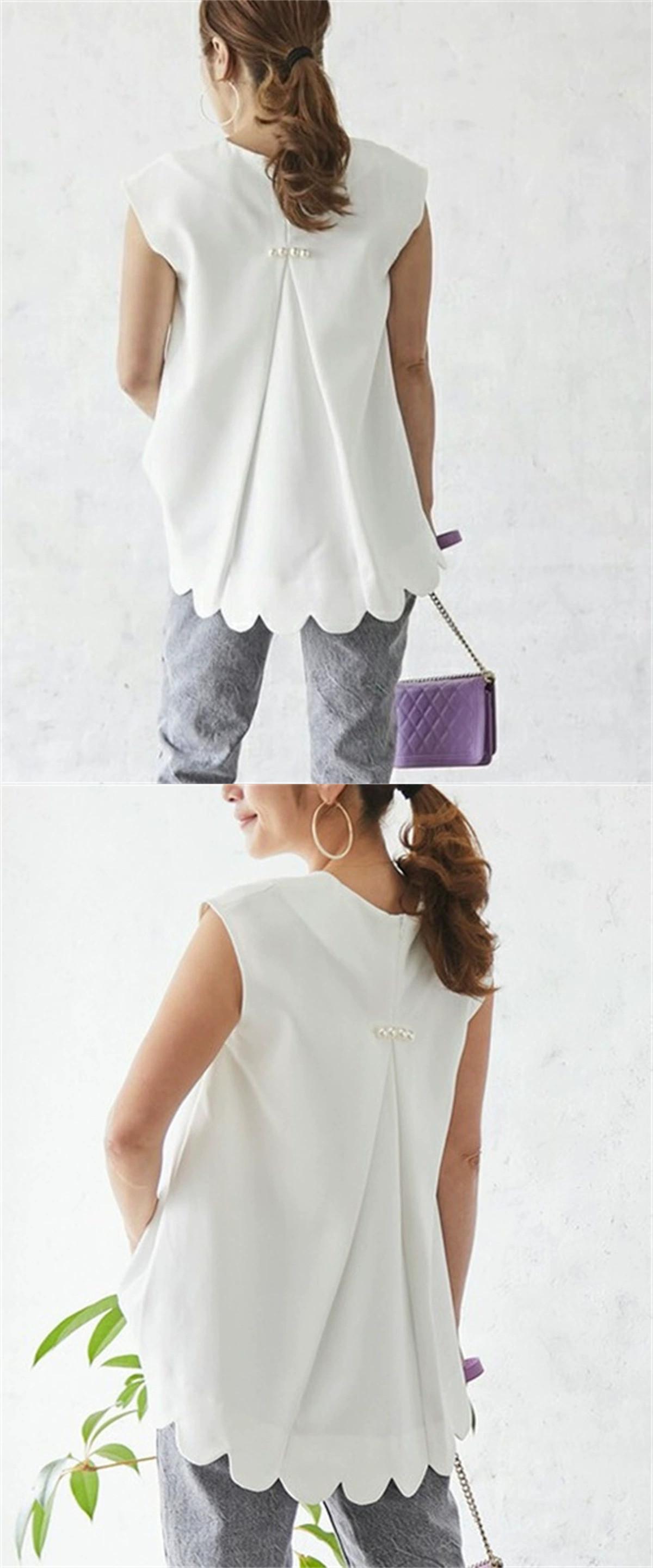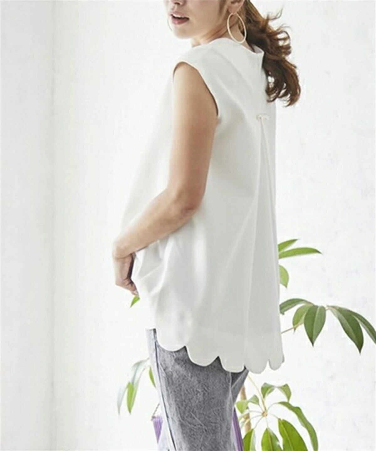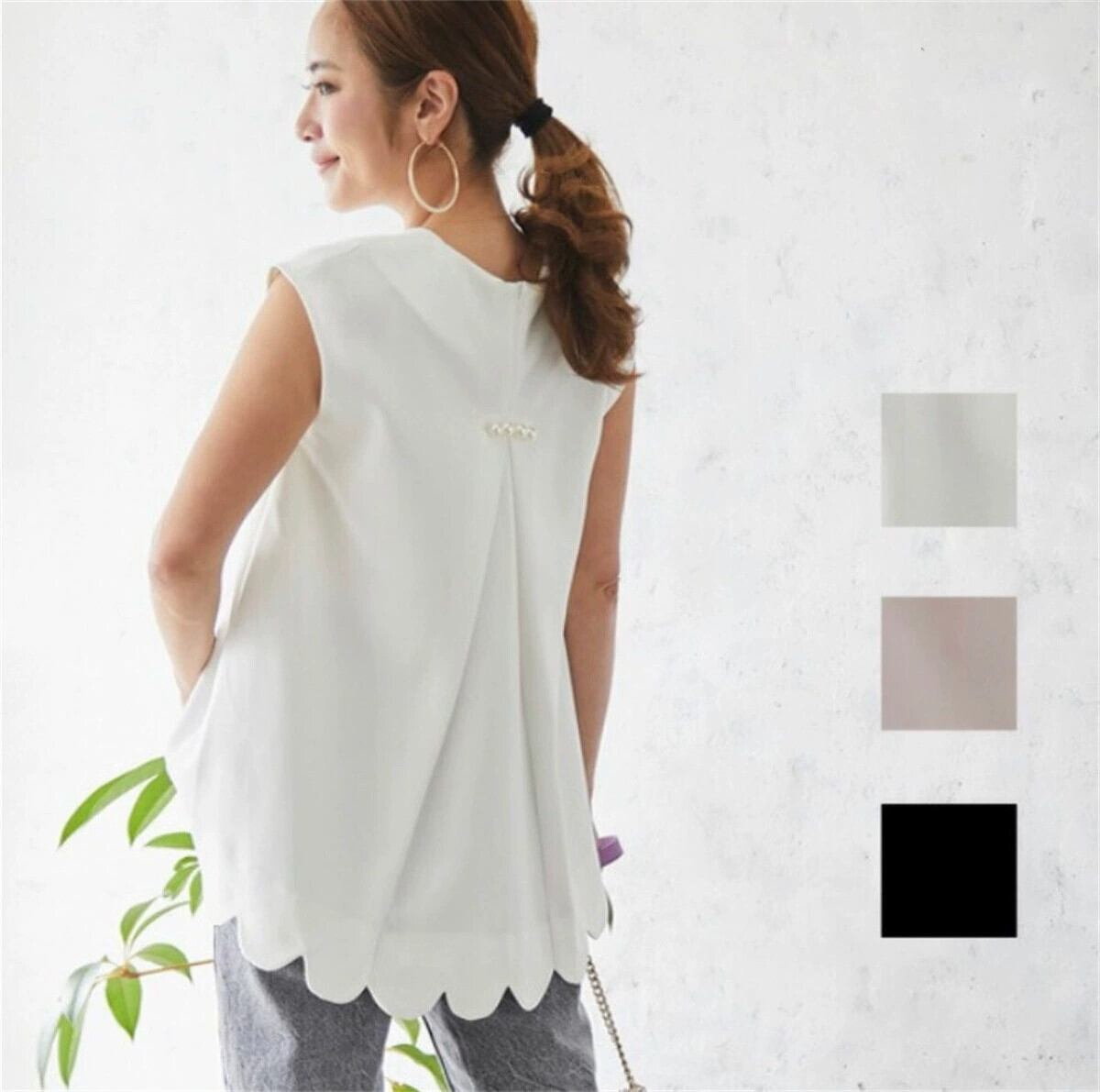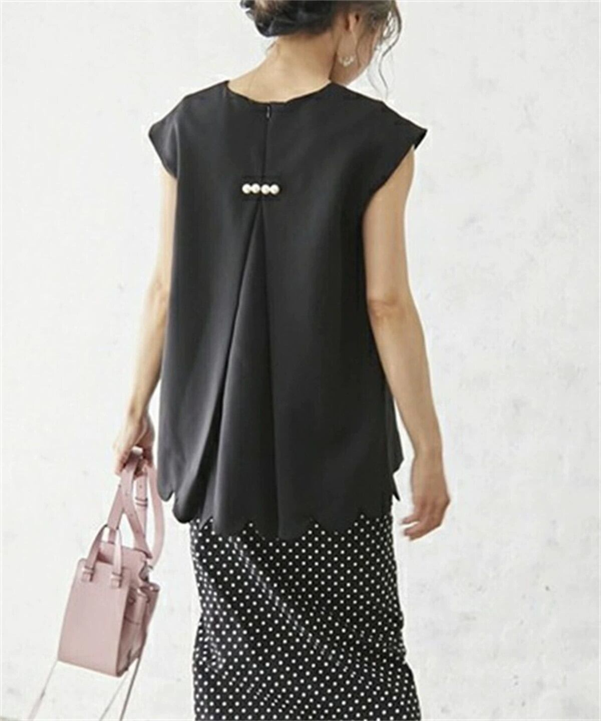 クロスボーダー 2022 新しい ese スタイルのバックスリット蓮の葉裾パールシャツ女性の夏のラウンドネックノースリーブトップ底 サマー 夏物 Oネック 真珠 cat850586656832