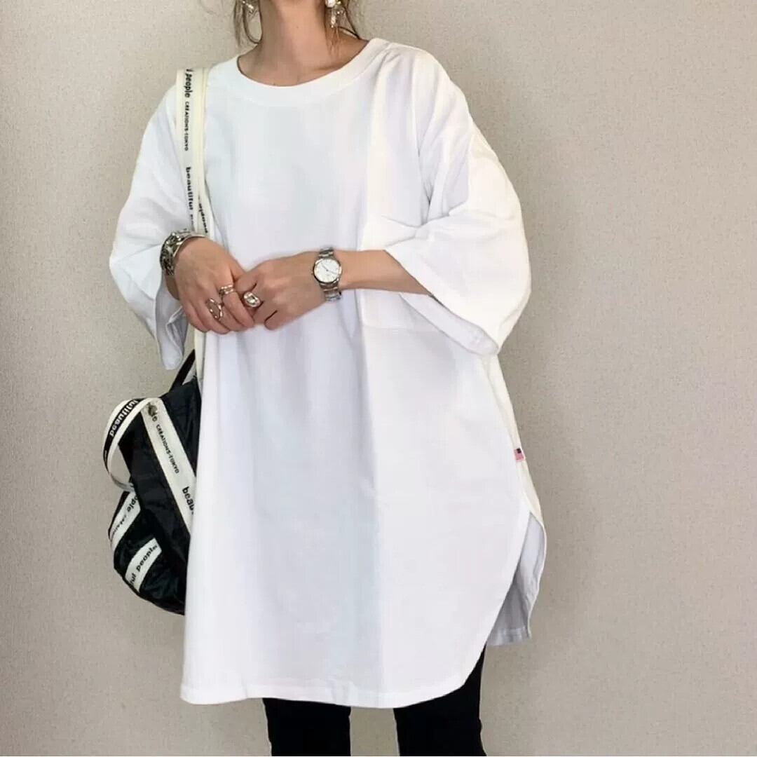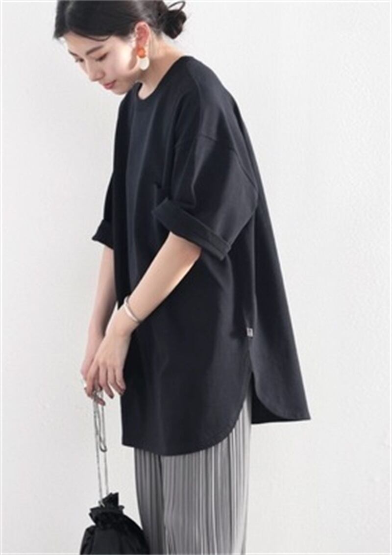 ese 2022 夏の婦人服ピュアコットンルーズスリム裾アークステッカーポケット多用途女性の Tシャツ サマー 夏物 cat864061536577