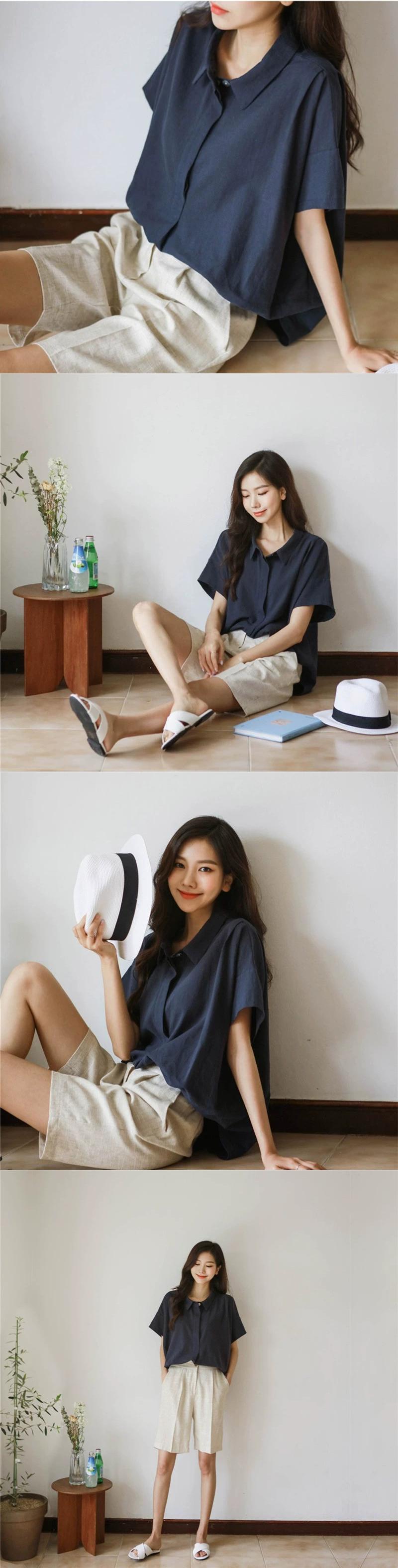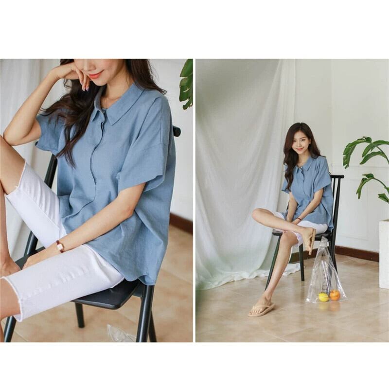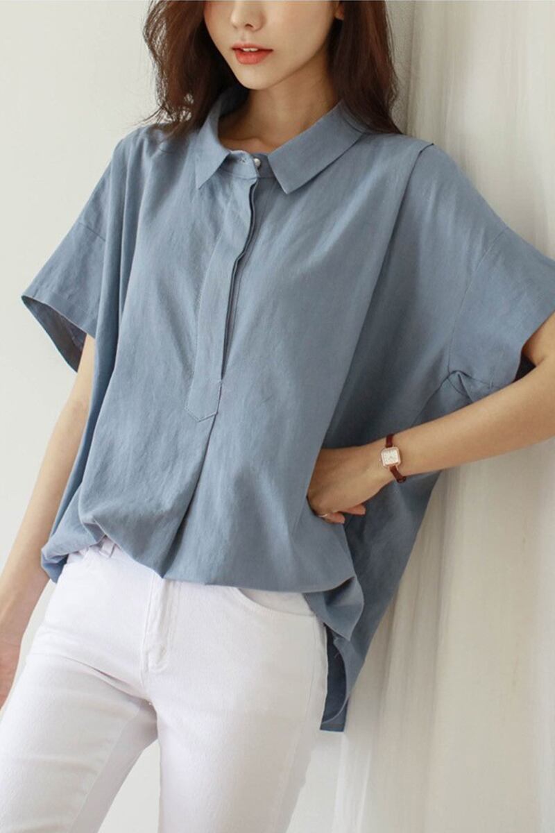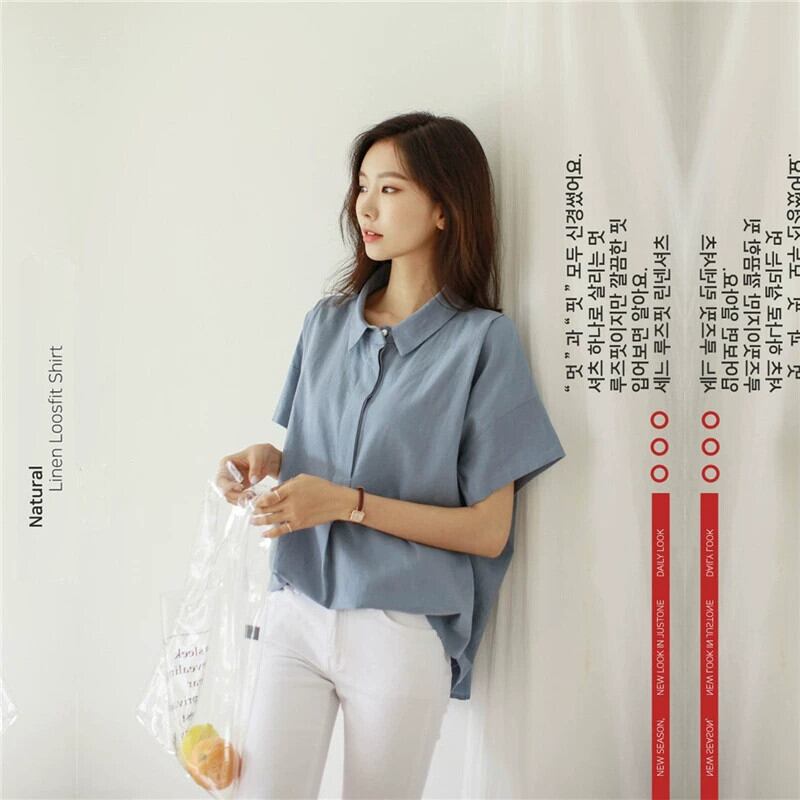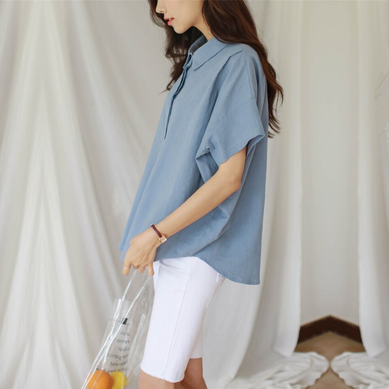 バージョンのポロ襟シンプルな半袖カジュアルプルオーバーシャツ女性 2022 夏の新しいルース文学アゲハトップ サマー 夏物 cat833061563233