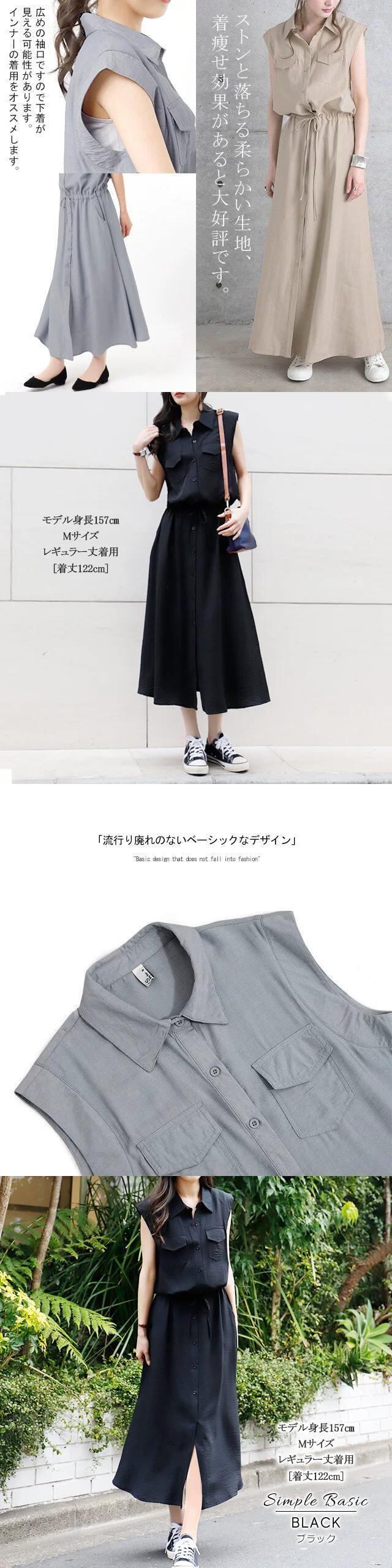 クロスボーダーと南ノースリーブポケット装飾ミドル丈シャツワンピースレディース夏大きいサイズベルトウエストワンピース 大きめサイズ サマー 夏物 ハーネス cat825198250368