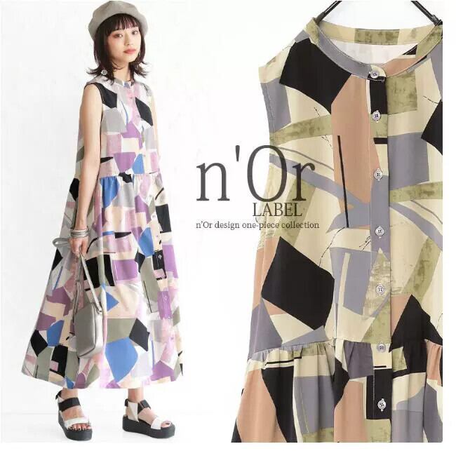 アマゾンと南部の国境を越えた新しい夏の幾何学模様のゆったりとしたカジュアルなミドル丈のノースリーブドレス サマー 夏物 cat838872930324